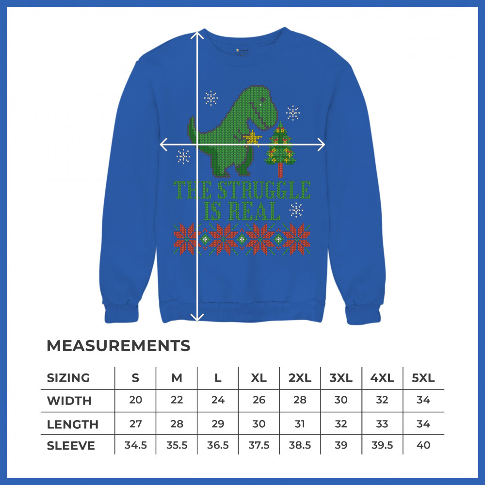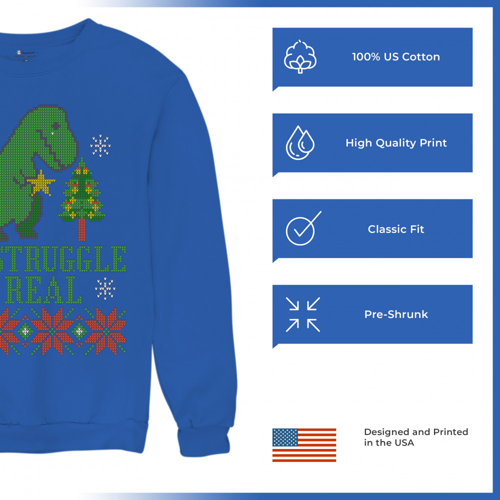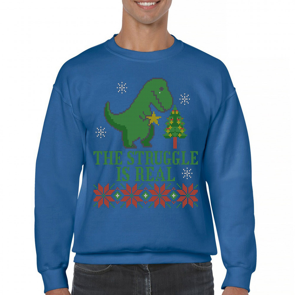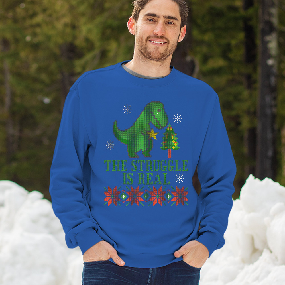 THE STRUGGLE IS REAL sweatshirt funny t-rex ugly sweater christmas crewneck royal blue