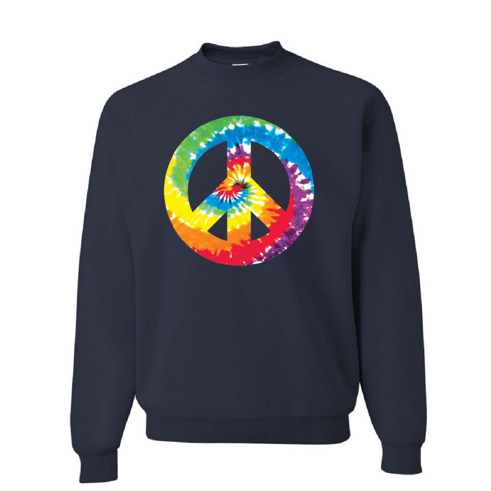 TIE DYE PEACE SYMBOL 80'S sweatshirt hippie happiness love not war sweater navy blue