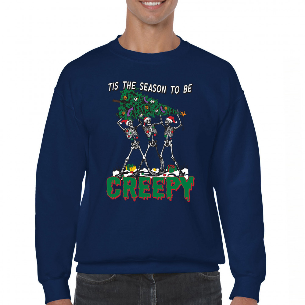 Spooky meets festive with "Tis the Season to Be Creepy" skeleton Christmas design. Perfect for holiday parties, Secret Santa, and unique gifts.