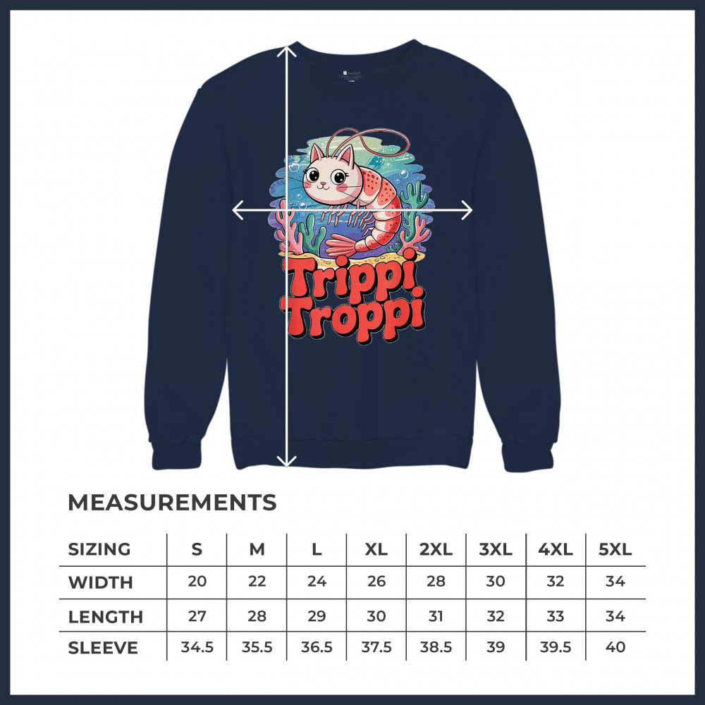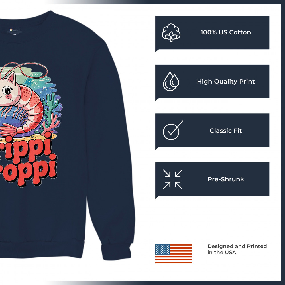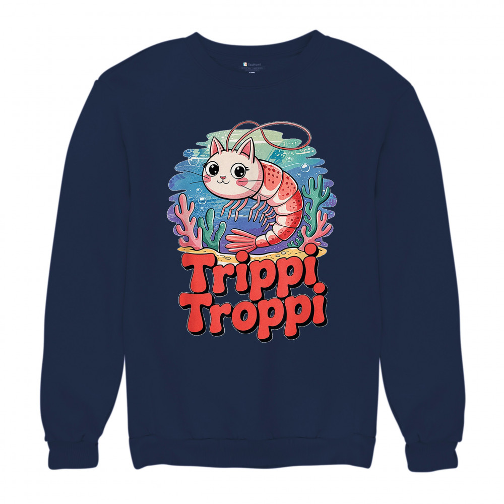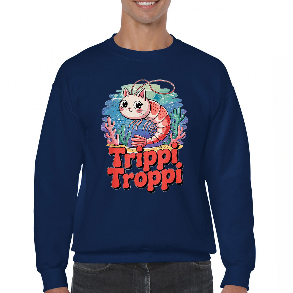 TRIPPI TROPPI SHRIM CAT crewneck sweatshirt italian brainrot gen z alpha meme navy blue