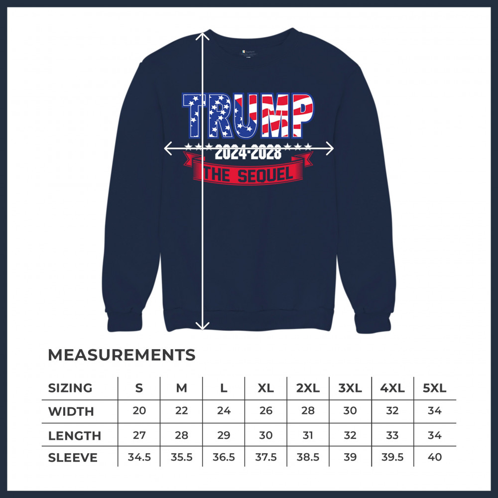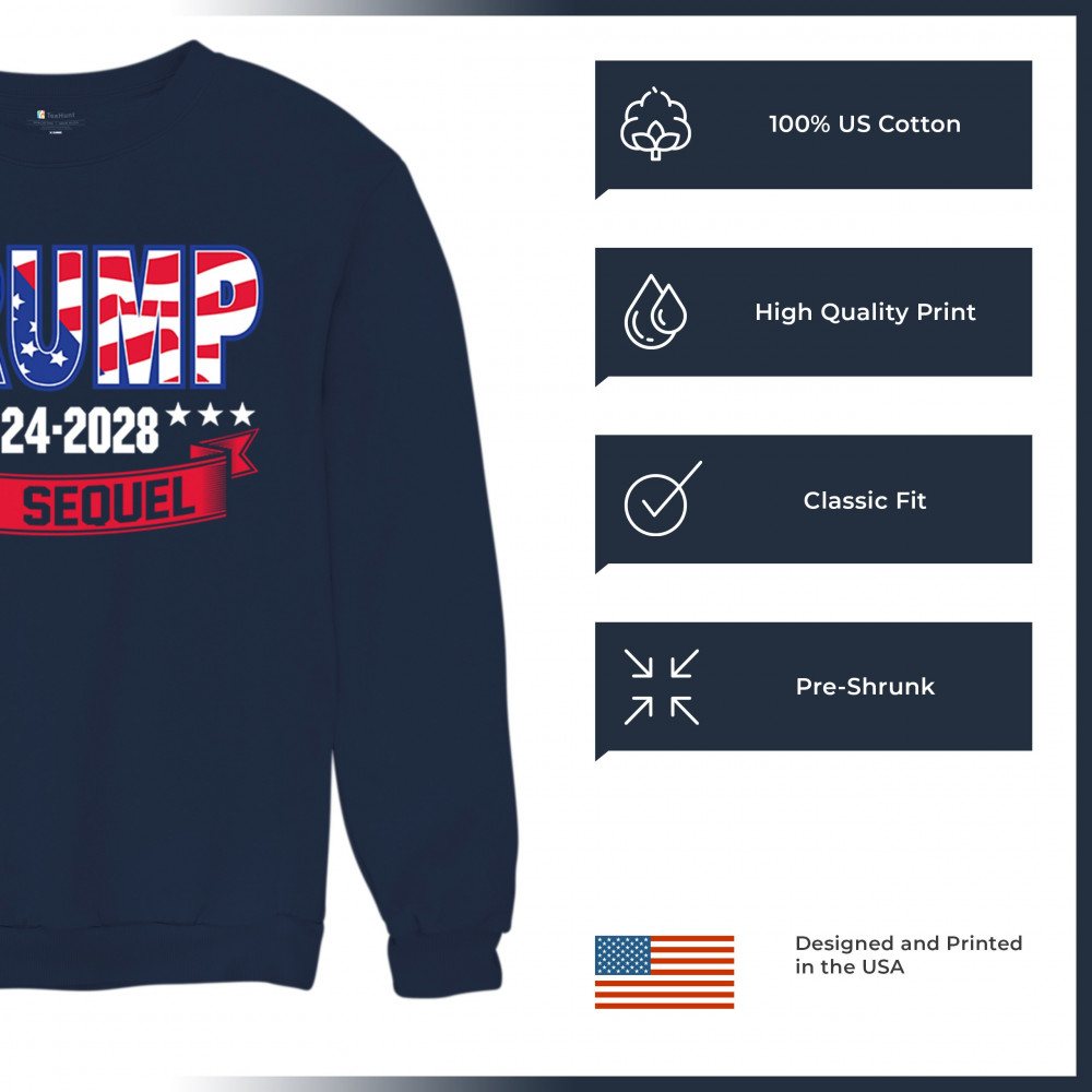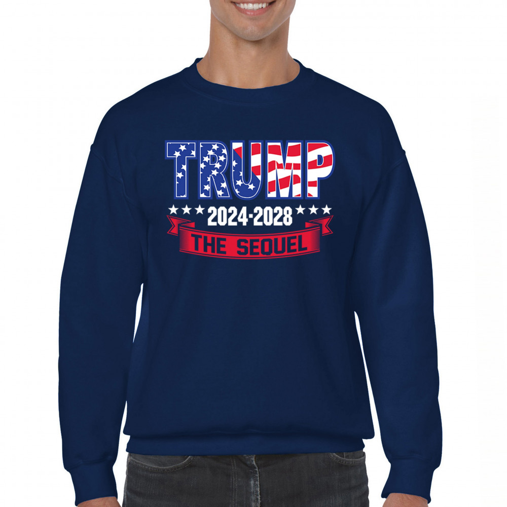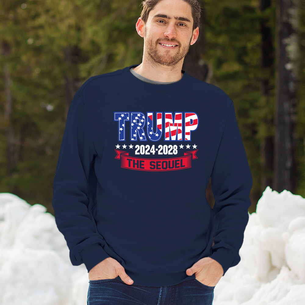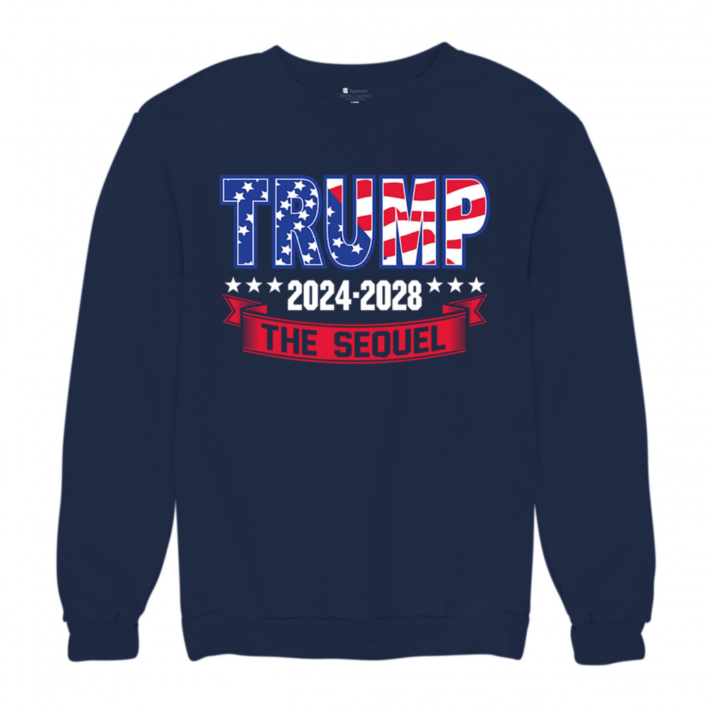 Stand with Trump for 2024-2028 in "The Sequel" design, celebrating America First, conservative values, and 4 more years of patriotic vision.