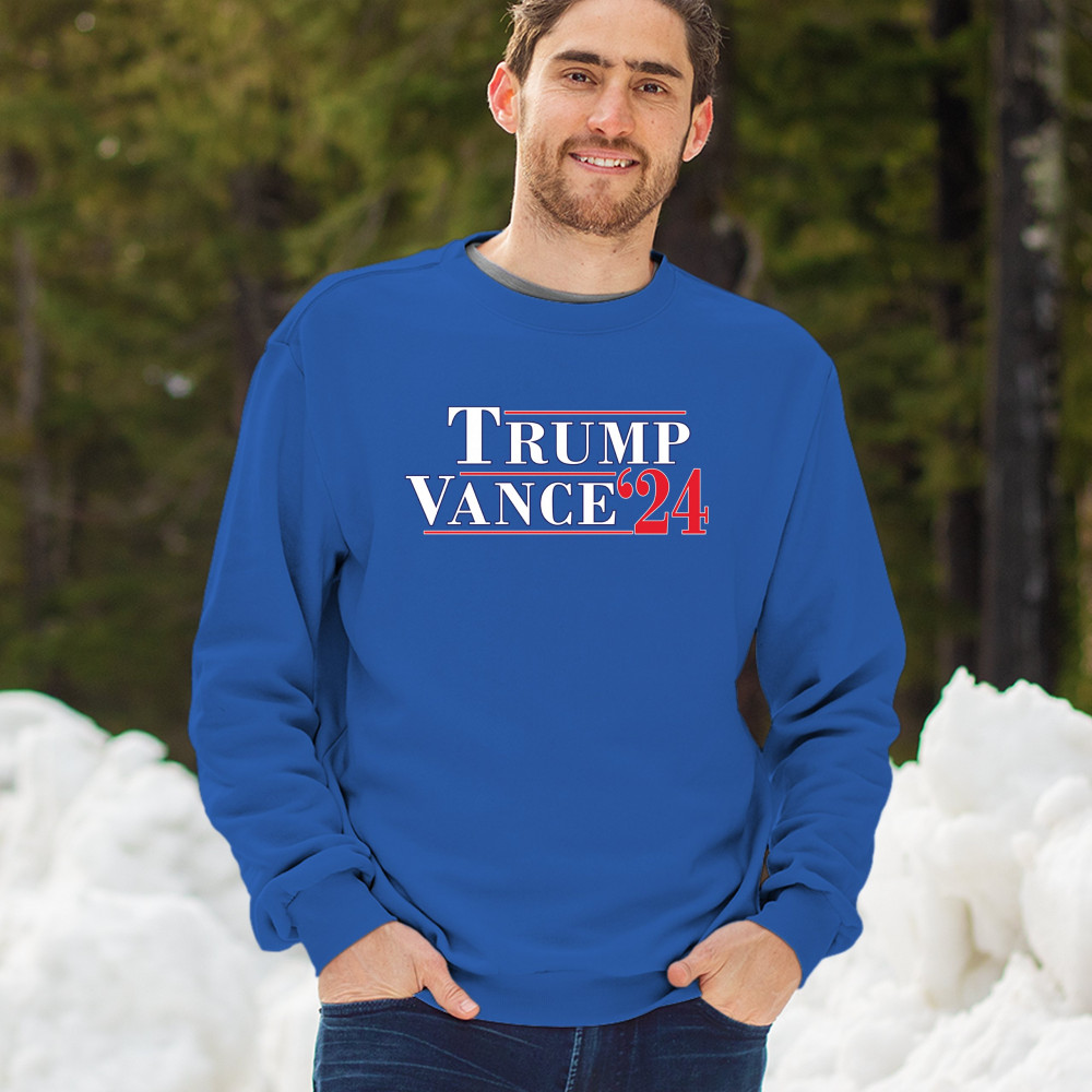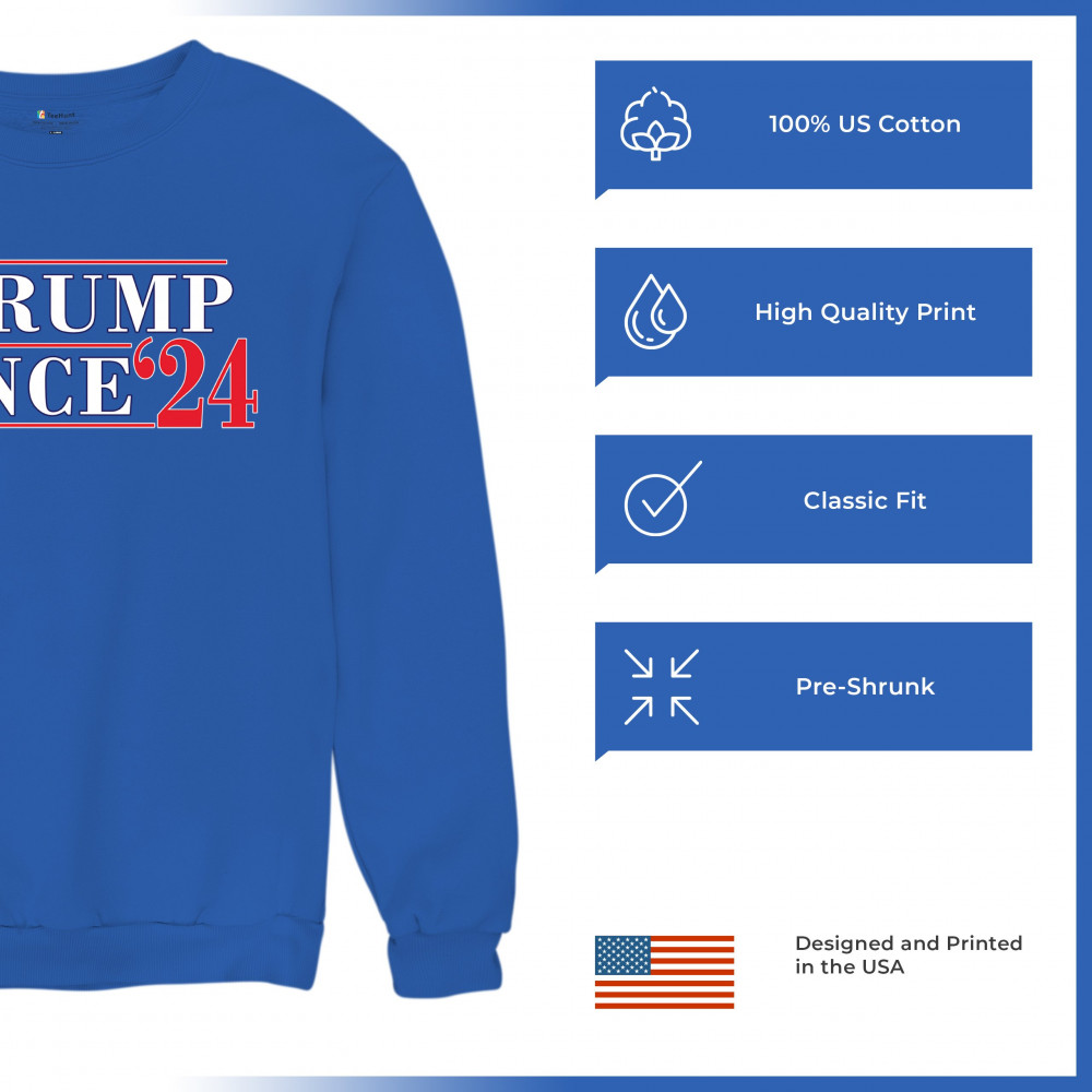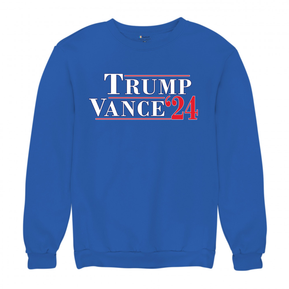 Show your support for Trump Vance 2024 with this patriotic design featuring bold red, white, and blue colors and a flag background. Perfect for rallies and conservative events.