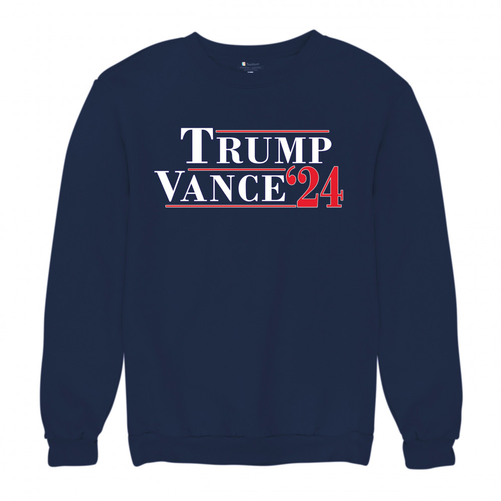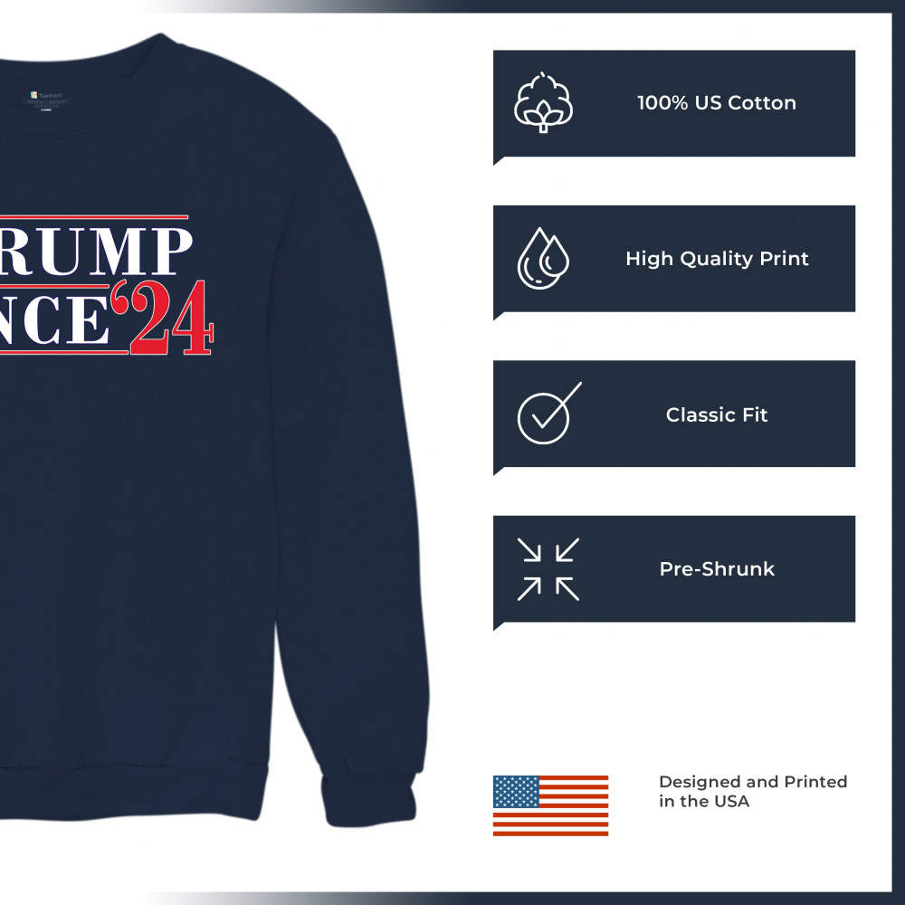 Show your support for Trump Vance 2024 with this patriotic design featuring bold red, white, and blue colors and a flag background. Perfect for rallies and conservative events.