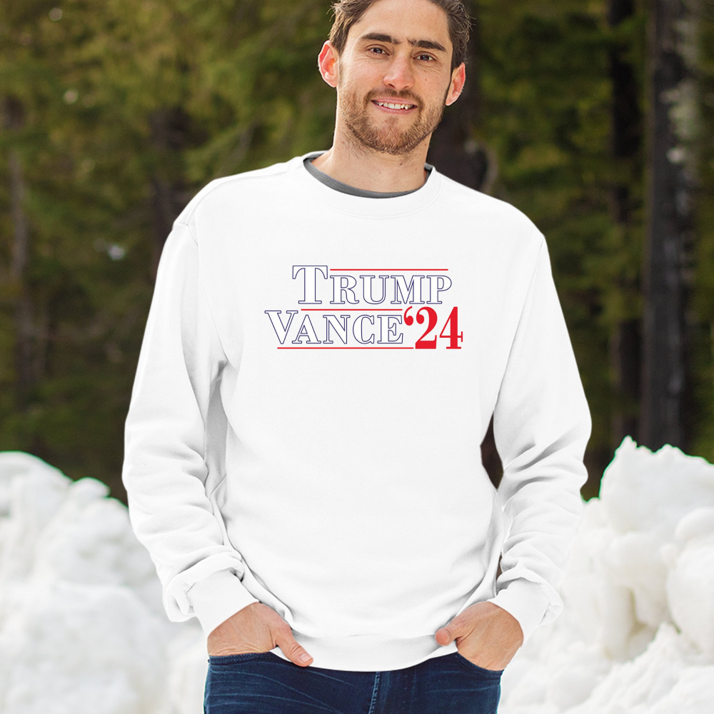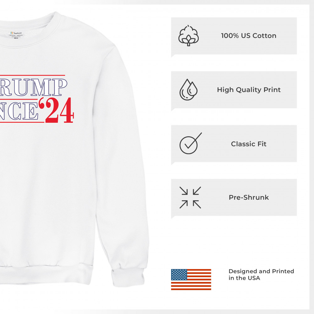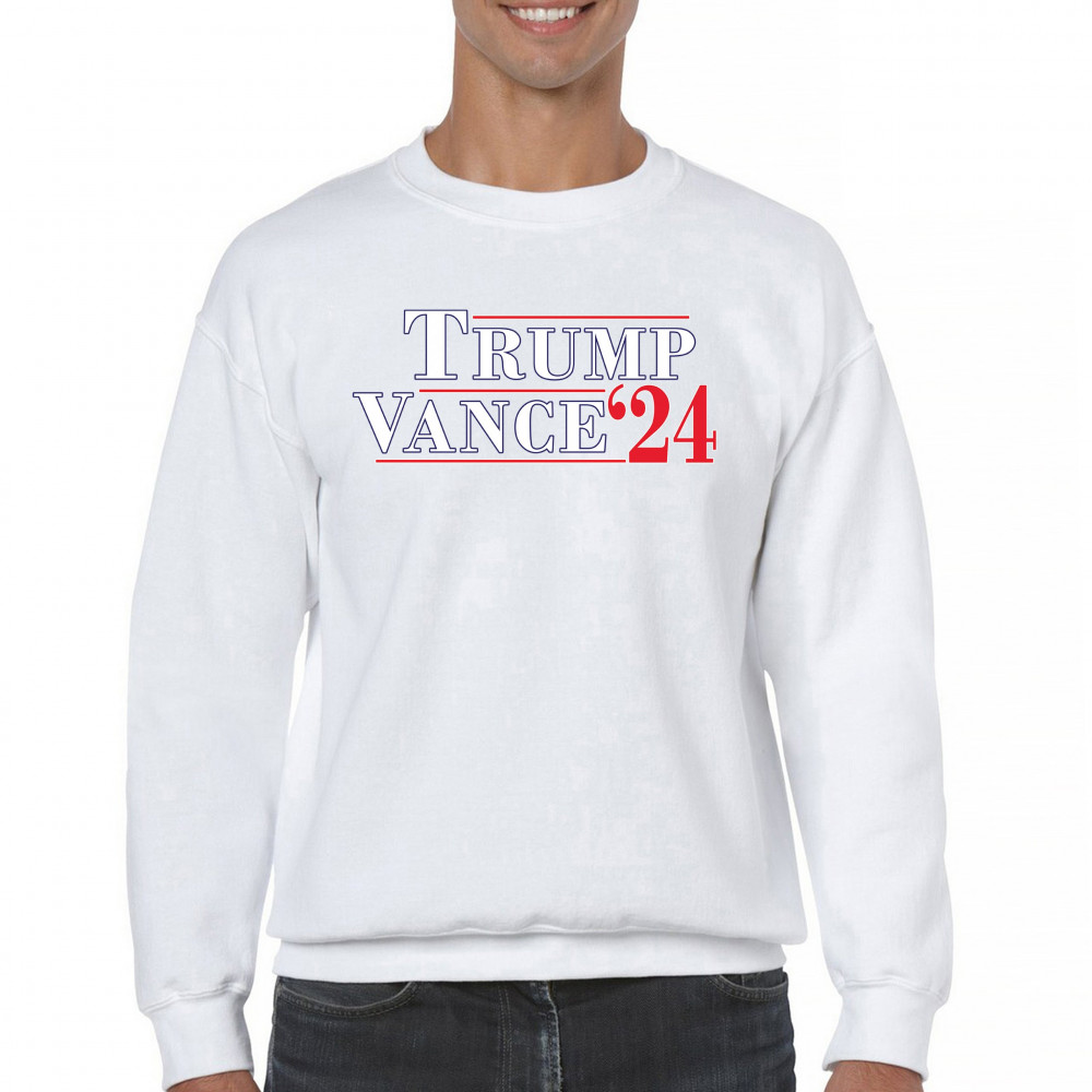 Show your support for Trump Vance 2024 with this patriotic design featuring bold red, white, and blue colors and a flag background. Perfect for rallies and conservative events.