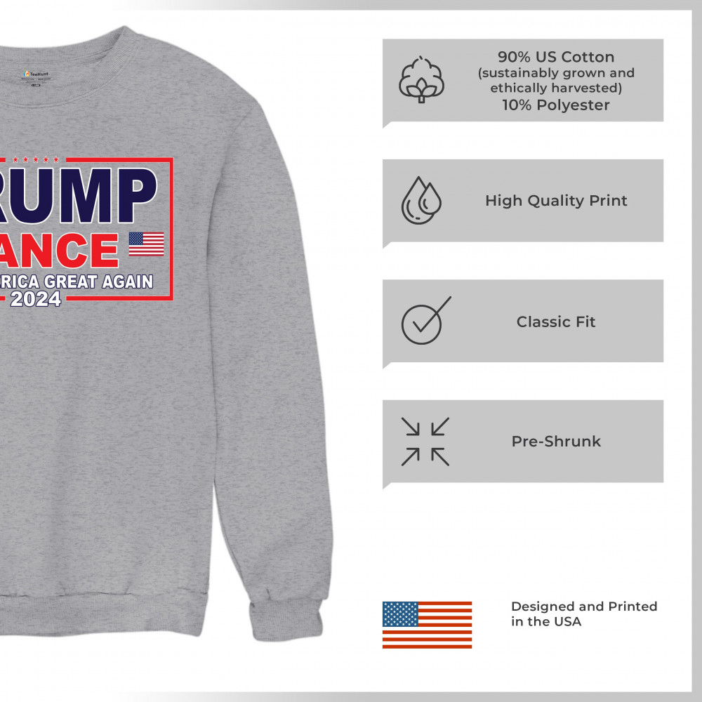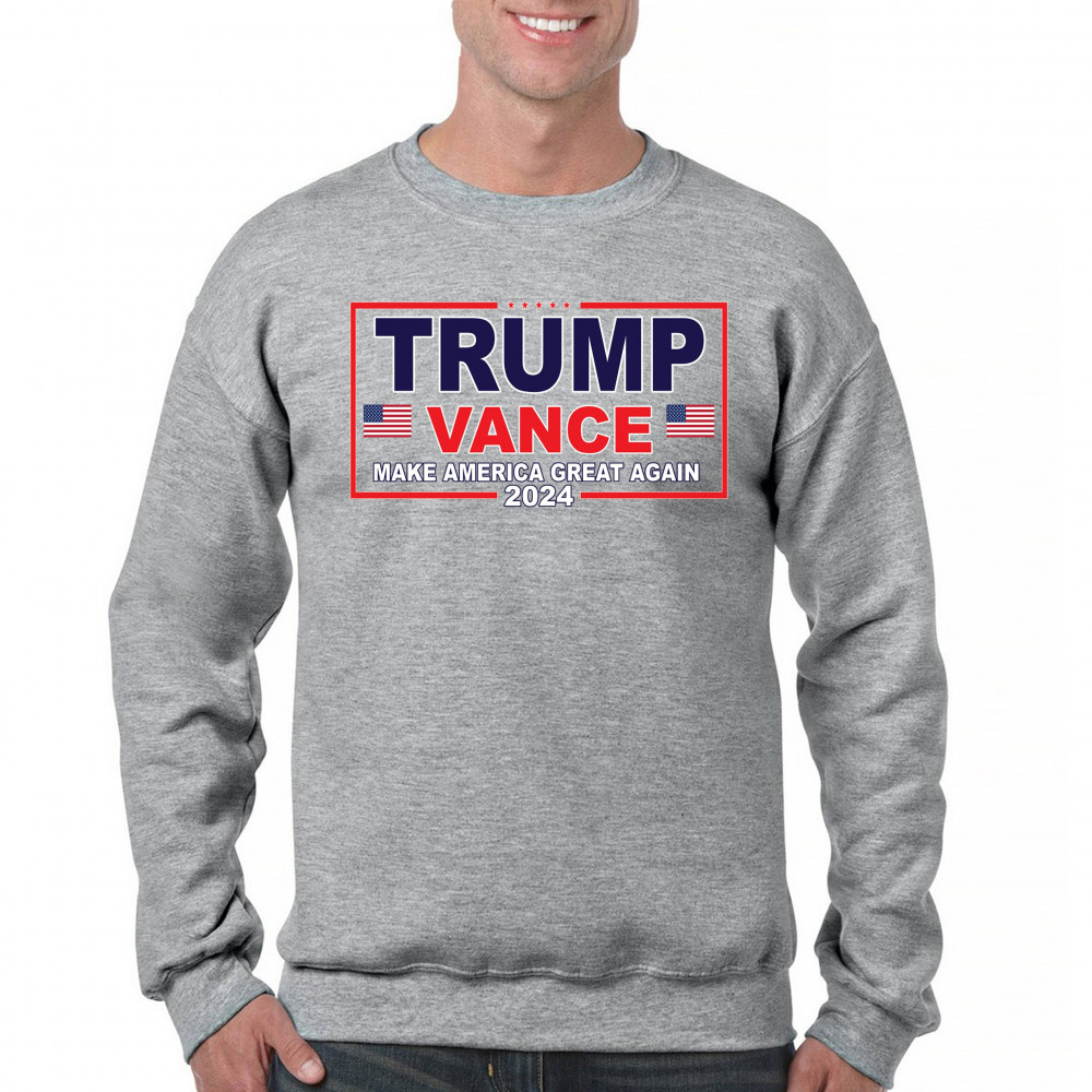 Showcase your support for the Trump-Vance 2024 campaign with this bold patriotic design featuring the American flag and "Make America Great Again" slogan.
