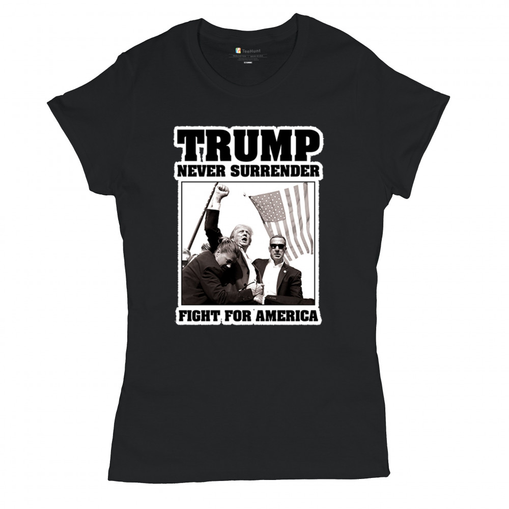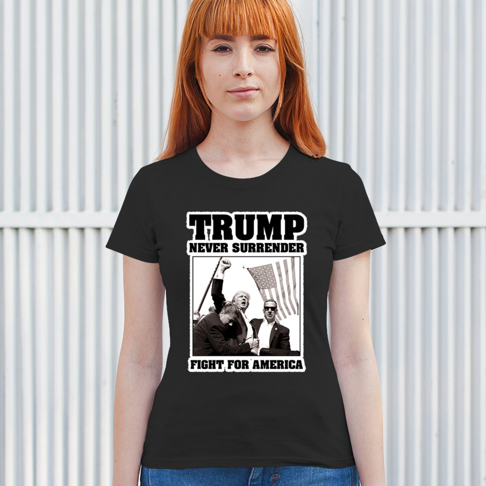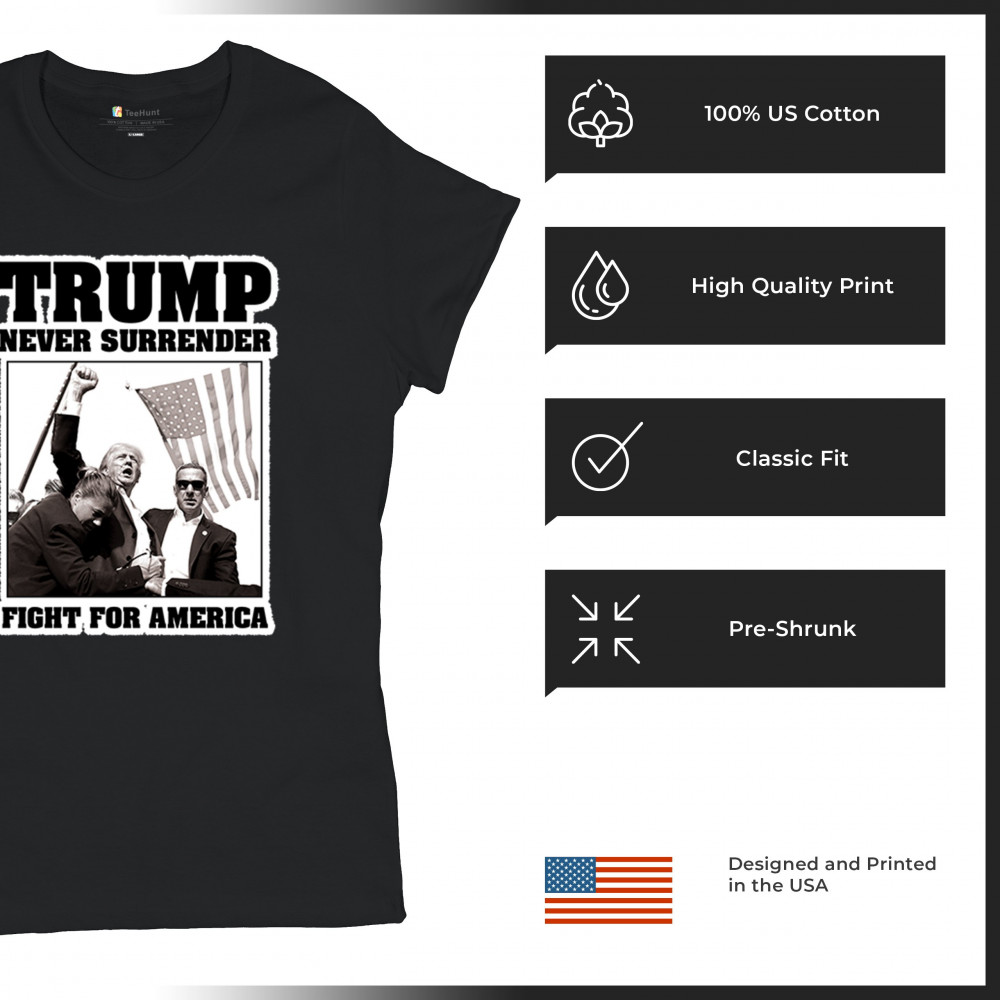 Express your unwavering support with the bold "Trump Never Surrender" design, perfect for rallies and everyday wear. Durable and stylish, show your patriotism proudly.