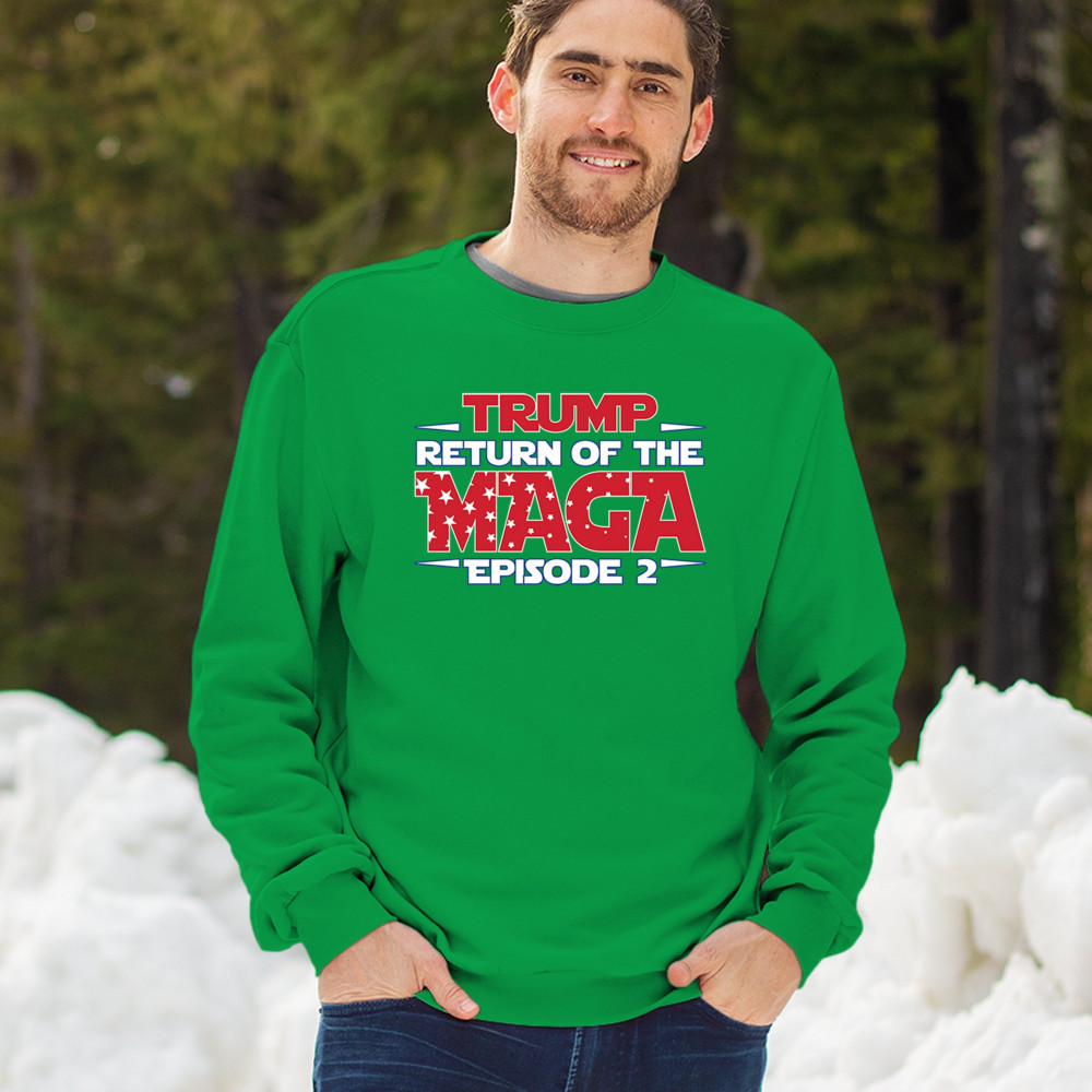 Make a bold statement with the "Return of the MAGA: Episode 2" design, celebrating Donald J. Trump and the Red Wave movement. Perfect for conservatives, Trump supporters, and Republicans who champion America First values, freedom, and the fight for a better future. A must-have for those who never surrender and stand for the people's mandate.