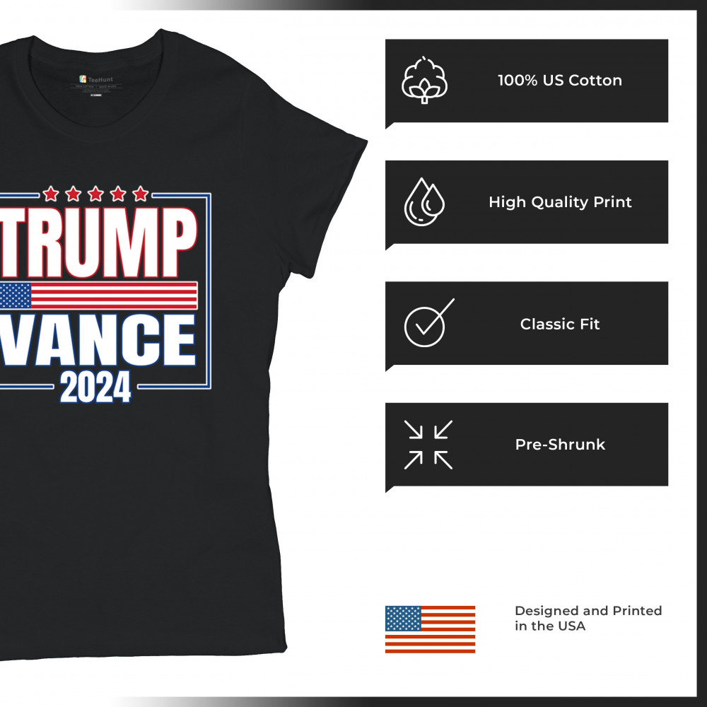 Show your support for Trump-Vance 2024 with this bold design. Perfect for rallies and everyday wear, it represents resilience and strong leadership.