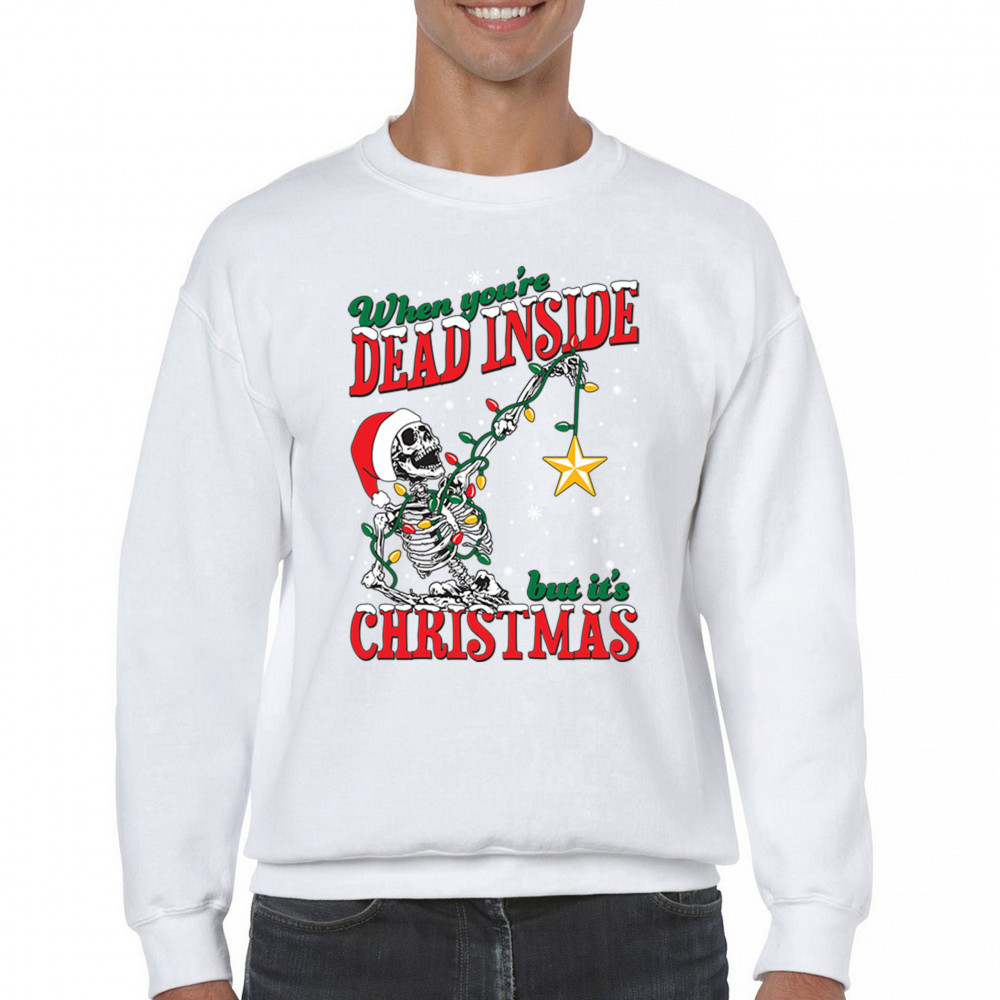 Celebrate humor and holiday spirit with the "When You're Dead Inside But It's Christmas" skeleton design. Perfect for parties and unique gifts.