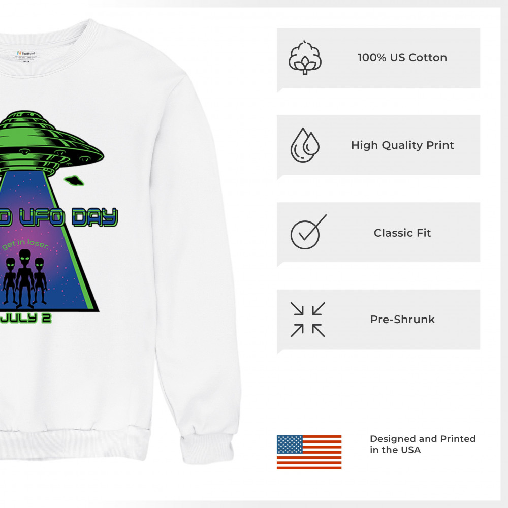 Join the celebration of World UFO Day with this unique design, featuring a detailed UFO beaming up three cheerful aliens with the phrase "Get in, loser." Perfect for those who are fascinated by the unknown and have a sense of humor about extraterrestrial life. Whether you're attending a UFO event, meeting with fellow enthusiasts, or just want to express your quirky style, this design is a must-have. Embrace the spirit of curiosity and fun with this eye-catching design for July 2nd.