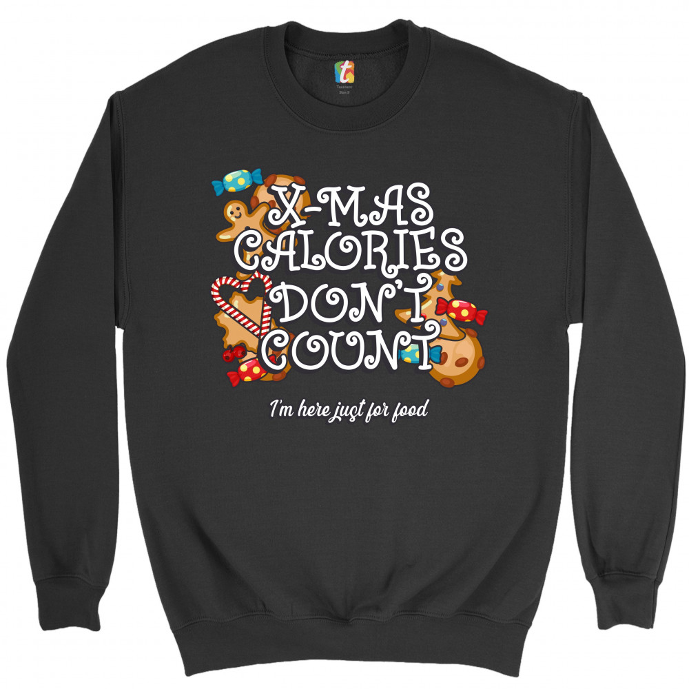 X-MAS CALORIES DON'T COUNT sweatshirt merry christmas naughty or nice crewneck black