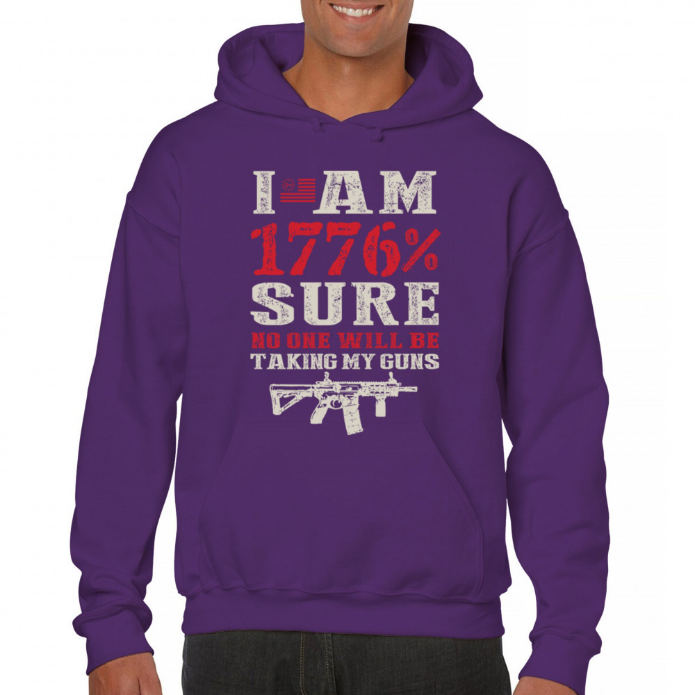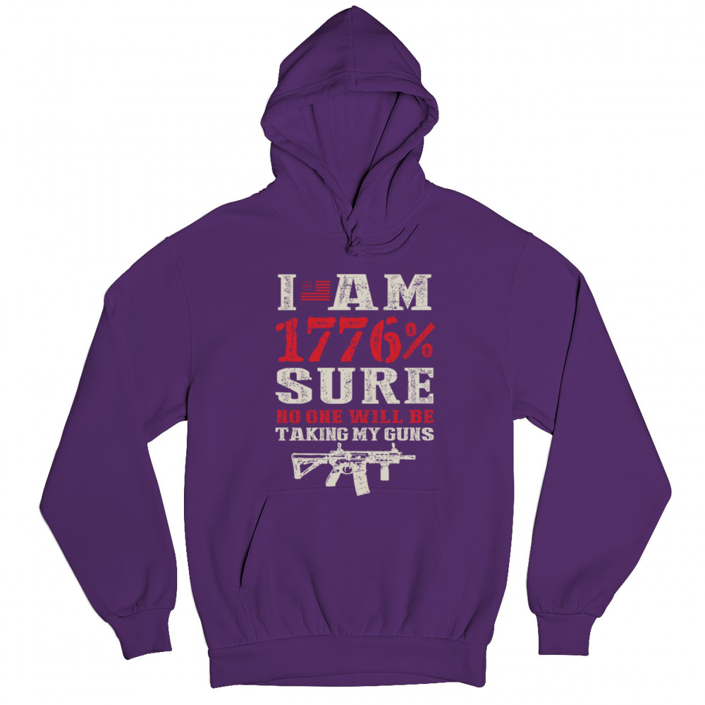 This eye-catching design shouts American pride with its 1776% certainty and pro-gun message. A distressed rifle graphic pairs with bold lettering and patriotic red, white, and blue styling. Perfect for gun owners, liberty advocates, and veterans who take their constitutional rights seriously. A true celebration of freedom and firepower.