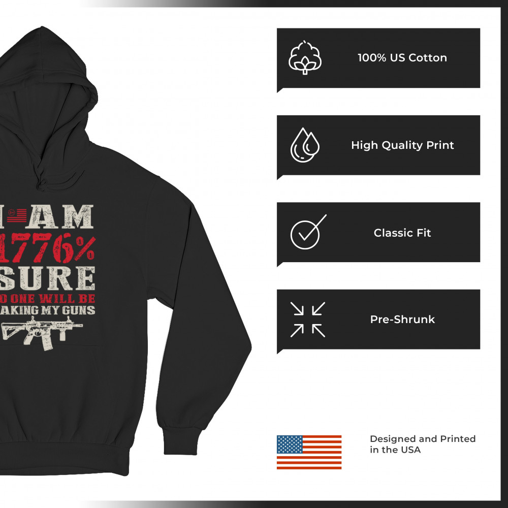 1776 PERCENT PATRIOTIC sweatshirt gun rights 2nd amendment ar rifle us hoodie black