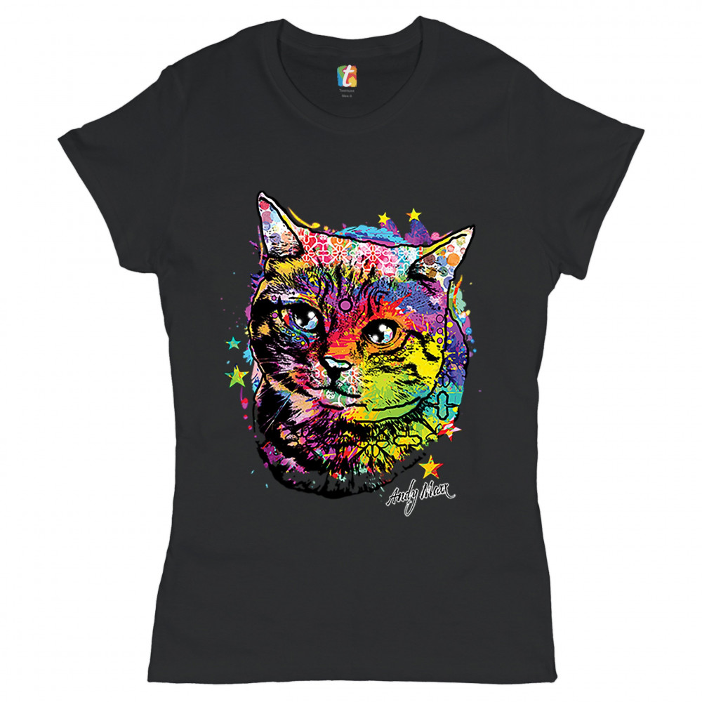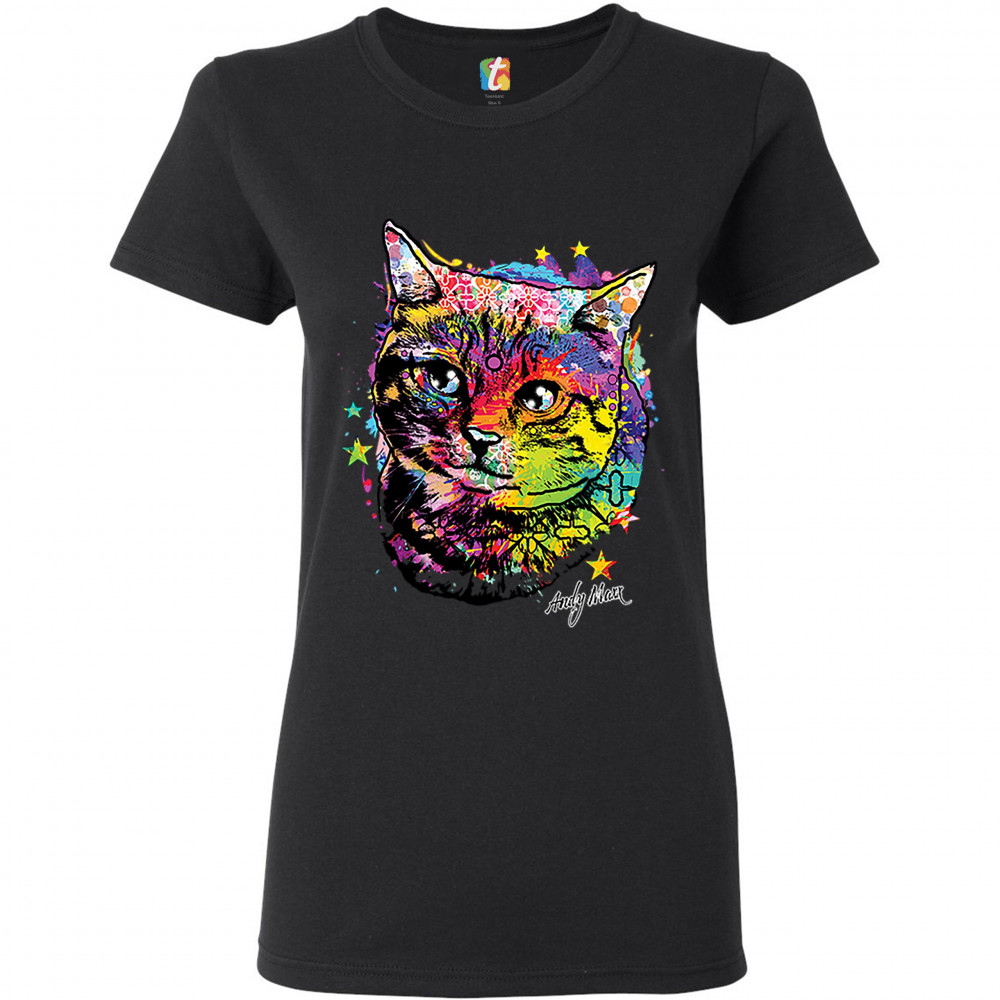 ADORABLE KITTEN t-shirt neon multicolor kitty andy maxx cat lover women's tee black