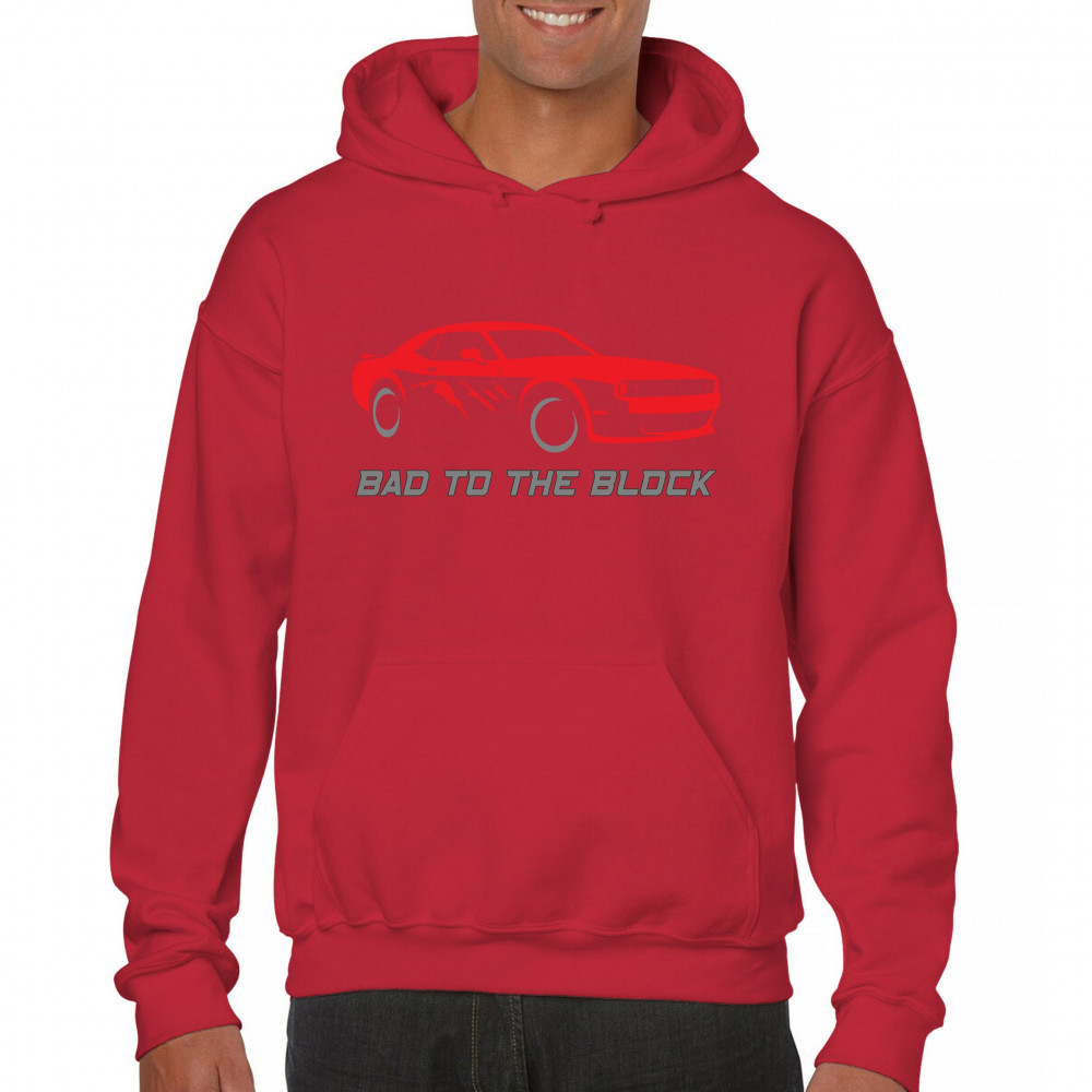 BAD TO THE BLOCK MUSCLE CAR sweatshirt street racer american v8 power hoodie red