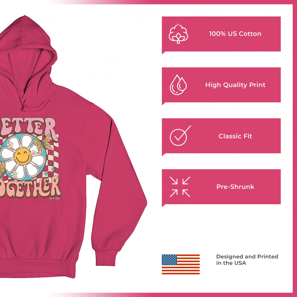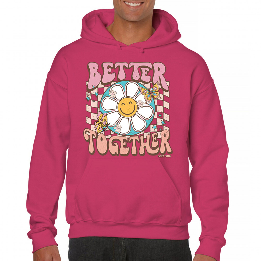 Join us in celebrating the simple joys with our "Better Together" design, where happiness blooms and friendships flutter like butterflies. This artwork is a sweet embrace of unity, crafted to bring smiles and a touch of retro charm to your life. It’s a delightful addition to any collection, symbolizing the belief that life's moments are sweeter shared. Adorn your favorite space with a design that's as warm and welcoming as a sunny day.