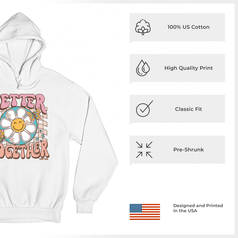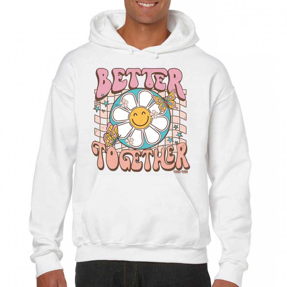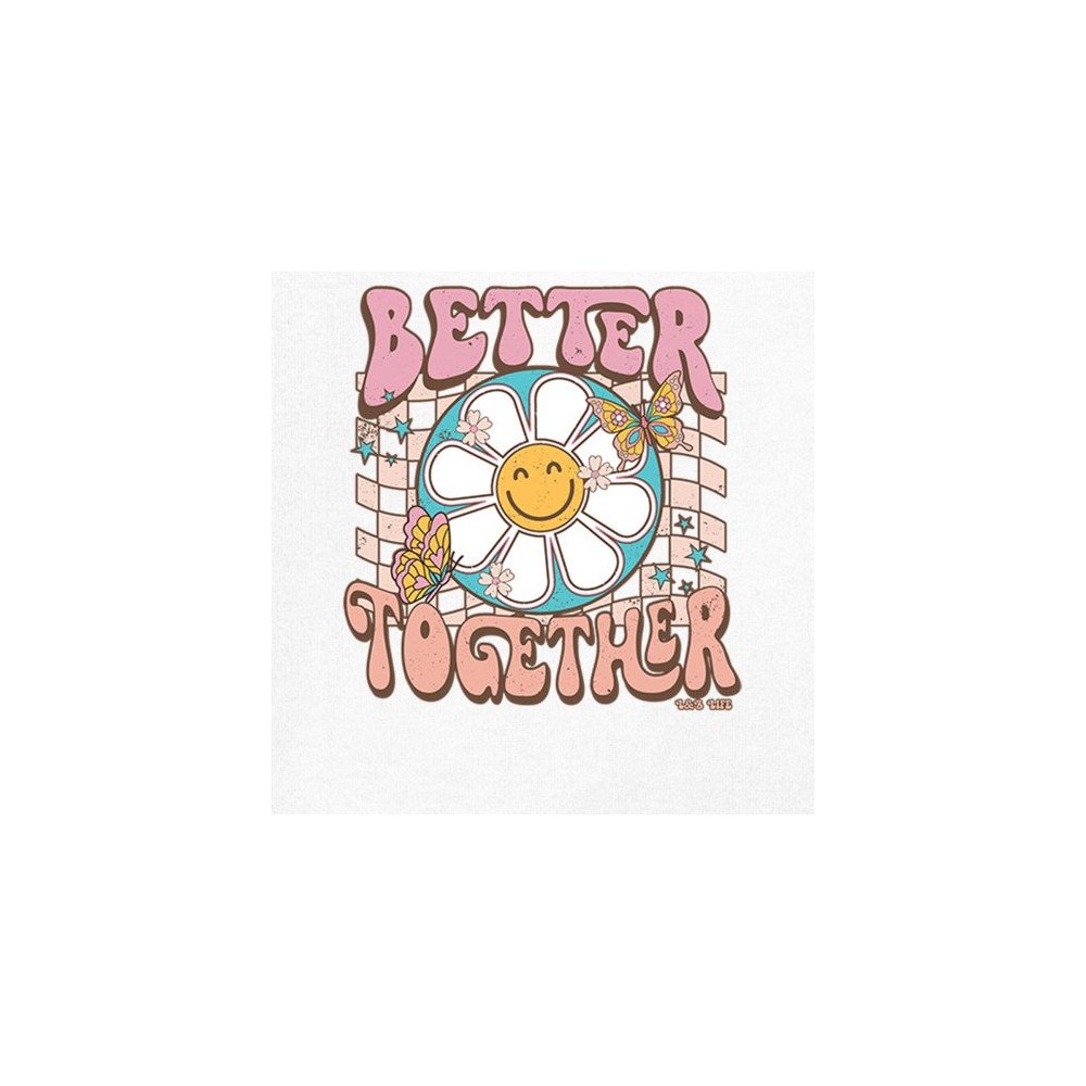 Join us in celebrating the simple joys with our "Better Together" design, where happiness blooms and friendships flutter like butterflies. This artwork is a sweet embrace of unity, crafted to bring smiles and a touch of retro charm to your life. It’s a delightful addition to any collection, symbolizing the belief that life's moments are sweeter shared. Adorn your favorite space with a design that's as warm and welcoming as a sunny day.