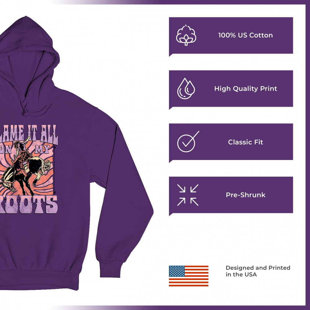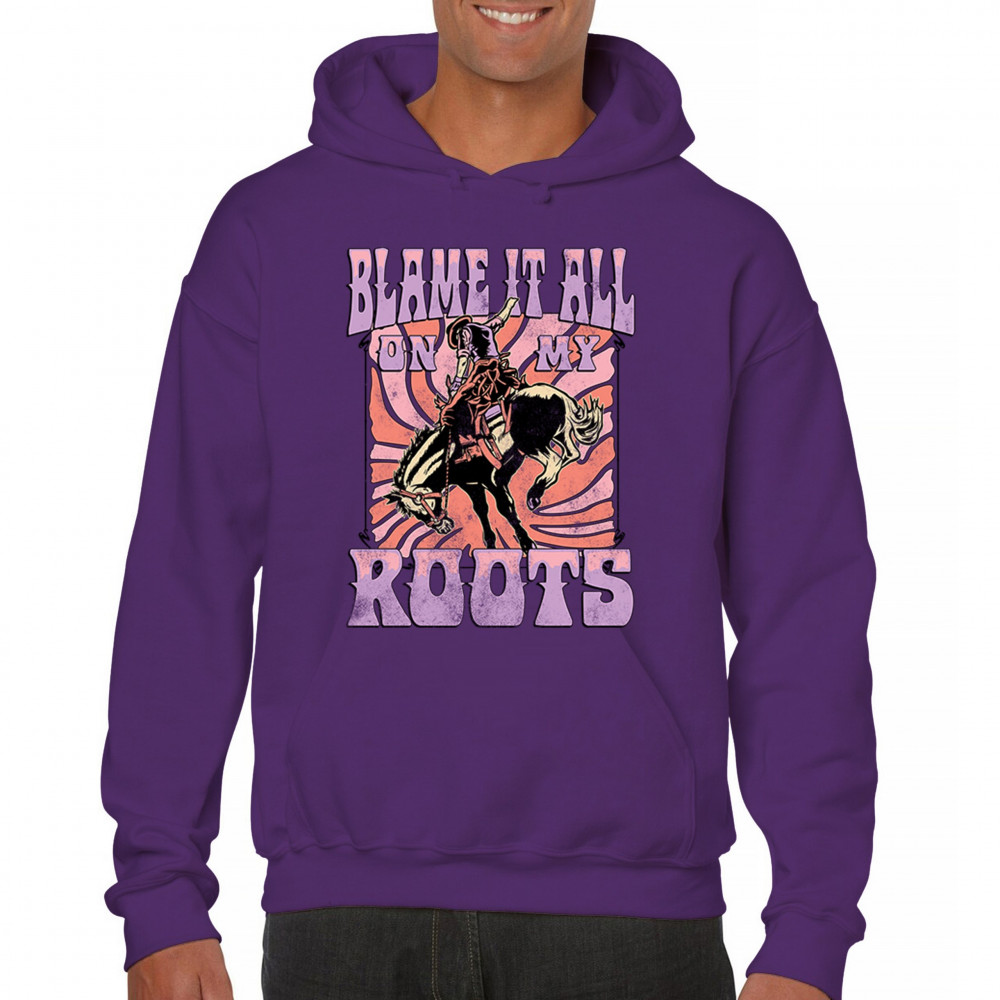 Blame It All On My Roots is vintage country style with rodeo spirit, perfect for small town life, barn dances, and wild country pride.