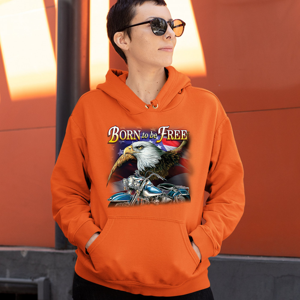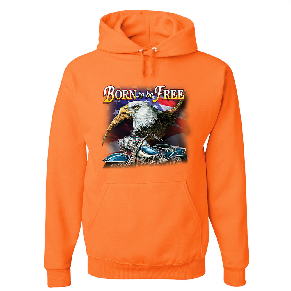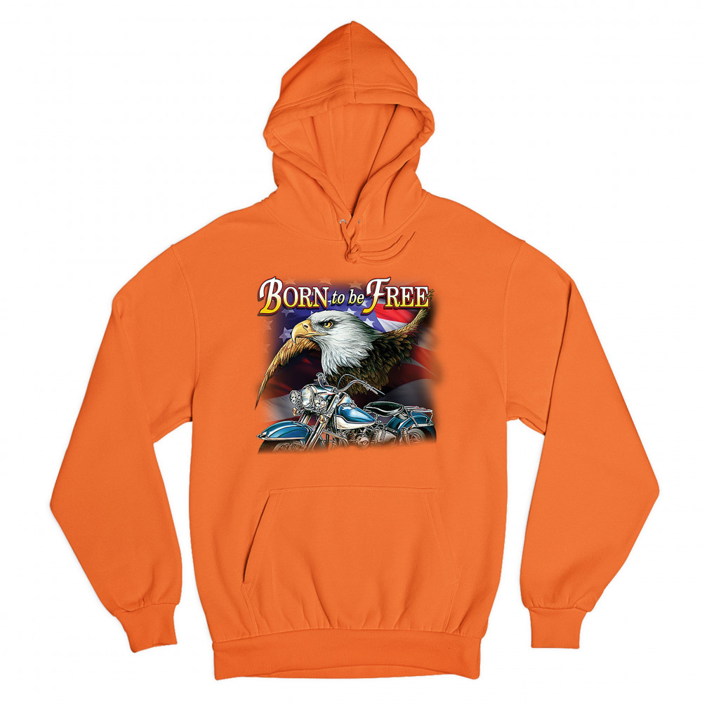 BORN TO BE FREE sweatshirt american bald eagle chopper biker patriotic hoodie orange