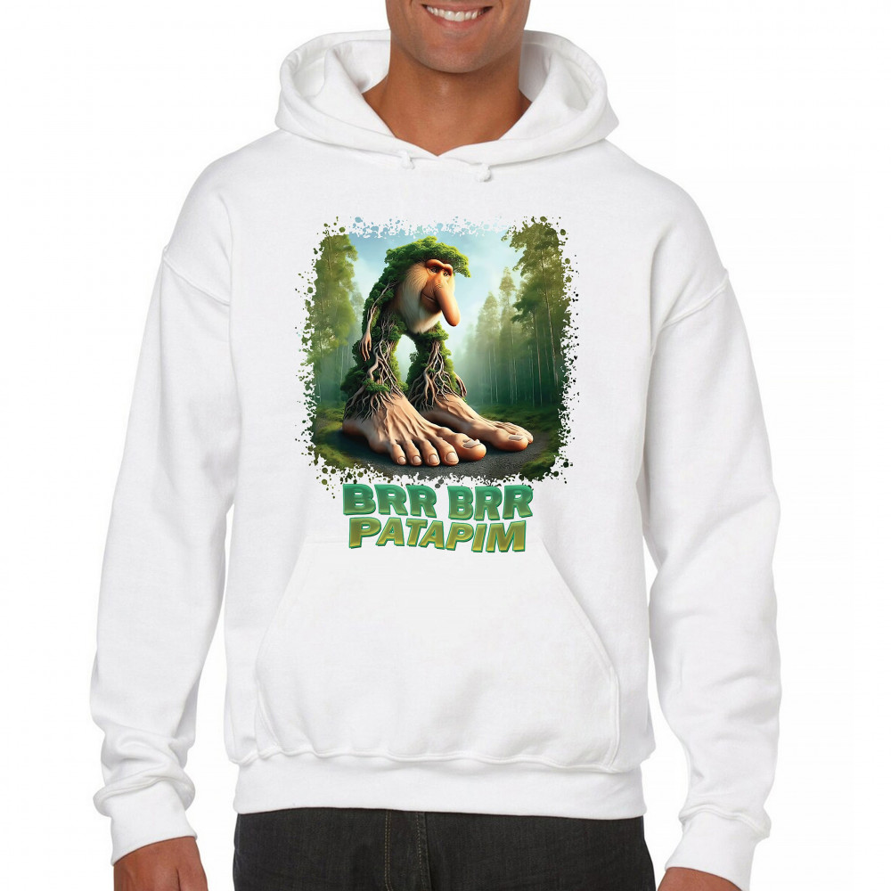 Brr Brr Patapim is forest-core gone full brainrot. Featuring a massive-footed tree-beast with cryptid energy, this design blends cursed meme culture, TikTok humor, weirdcore visuals, and surreal Gen Z fashion. It’s ideal for fans of absurd monster mashups and internet chaos fits.