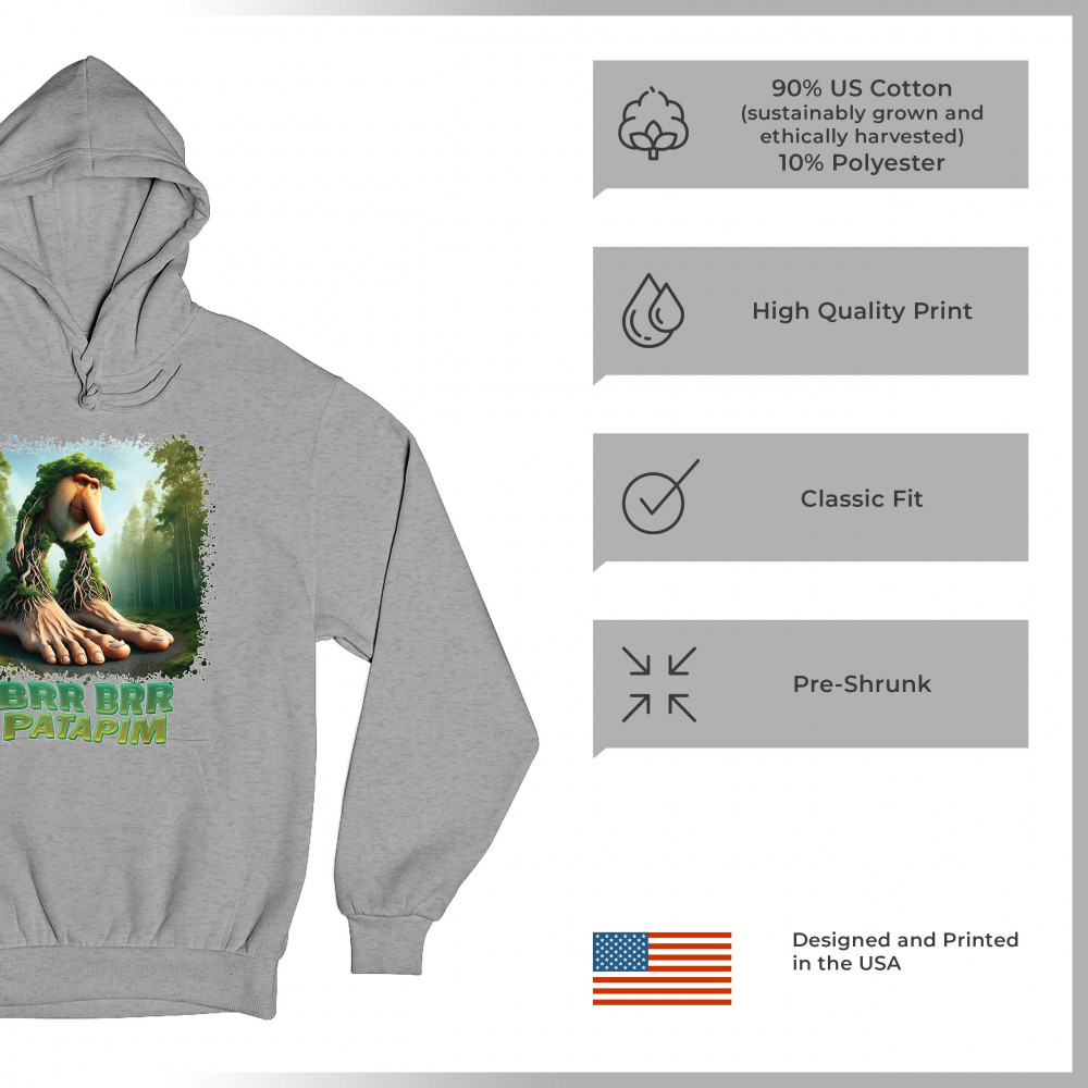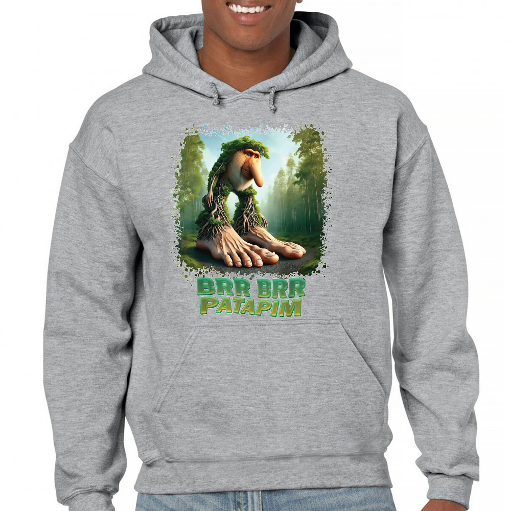Brr Brr Patapim is forest-core gone full brainrot. Featuring a massive-footed tree-beast with cryptid energy, this design blends cursed meme culture, TikTok humor, weirdcore visuals, and surreal Gen Z fashion. It’s ideal for fans of absurd monster mashups and internet chaos fits.