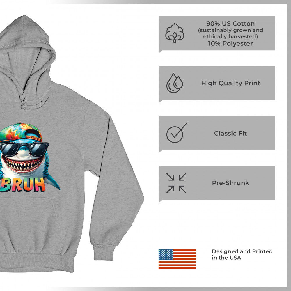 Bruh Shark meme shirt with Gen Z humor, cartoon shark design, summer beach vibes, Sigma Aura, and Italian Brainrot internet humor.