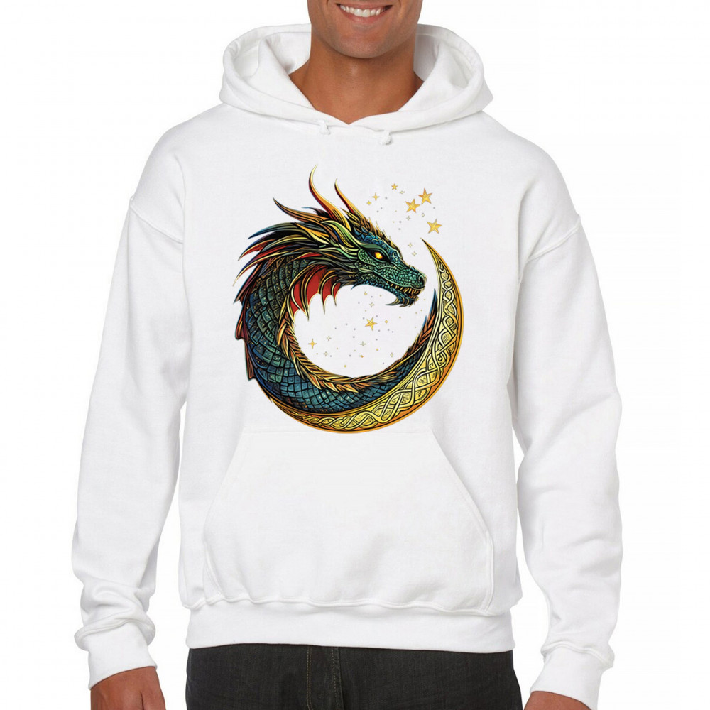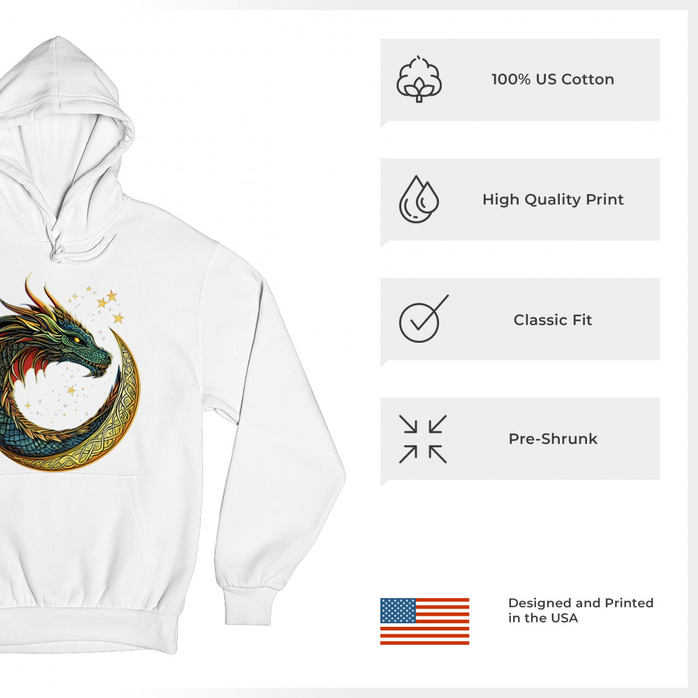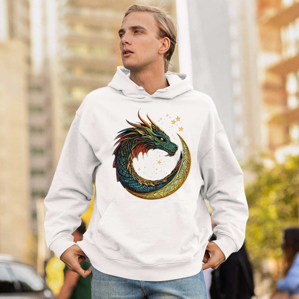 Unleash the spirit of transformation with this fierce dragon coiled inside a golden Celtic crescent moon. Its radiant scales and glowing eyes come to life against a starry, mystical sky. A symbol of fire energy, wisdom, and primal strength—perfect for gamers, fantasy enthusiasts, spiritual seekers, and legend lovers.