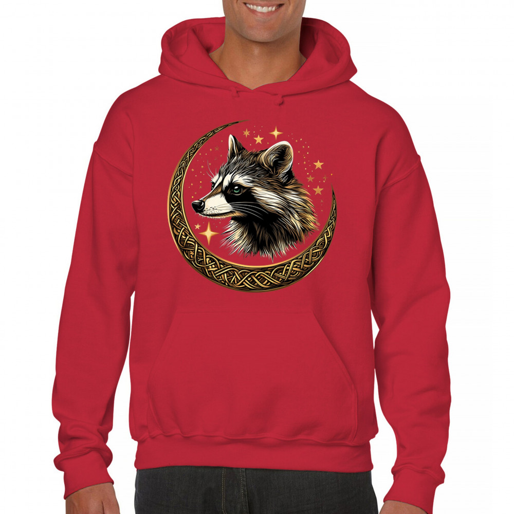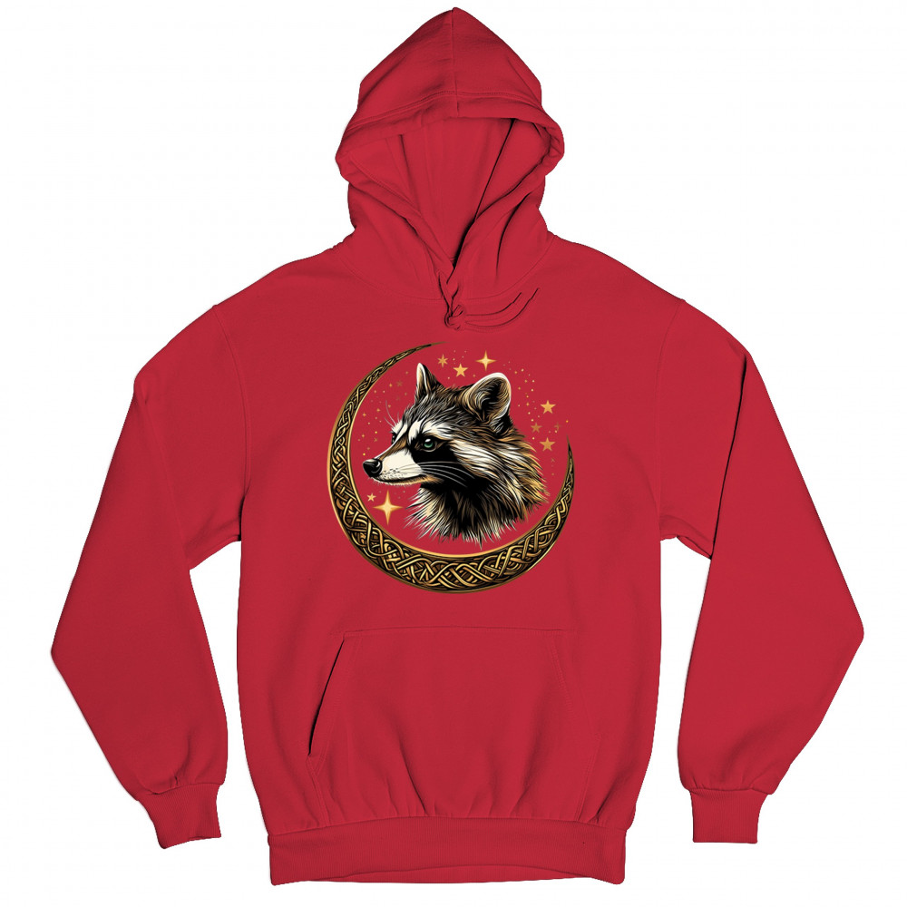 Cosmic raccoon design in Celtic moon. Symbol of adaptability, mystery, and spiritual intelligence. A perfect gift for wild and curious souls.