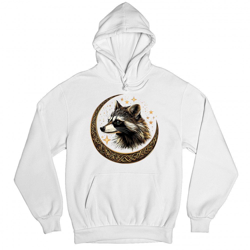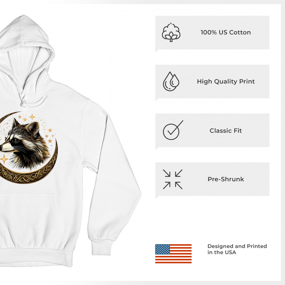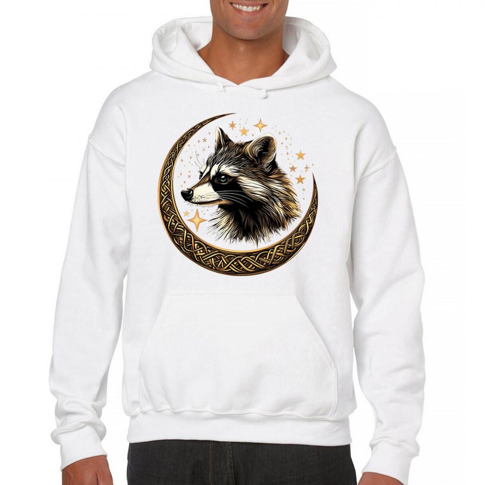 Cosmic raccoon design in Celtic moon. Symbol of adaptability, mystery, and spiritual intelligence. A perfect gift for wild and curious souls.