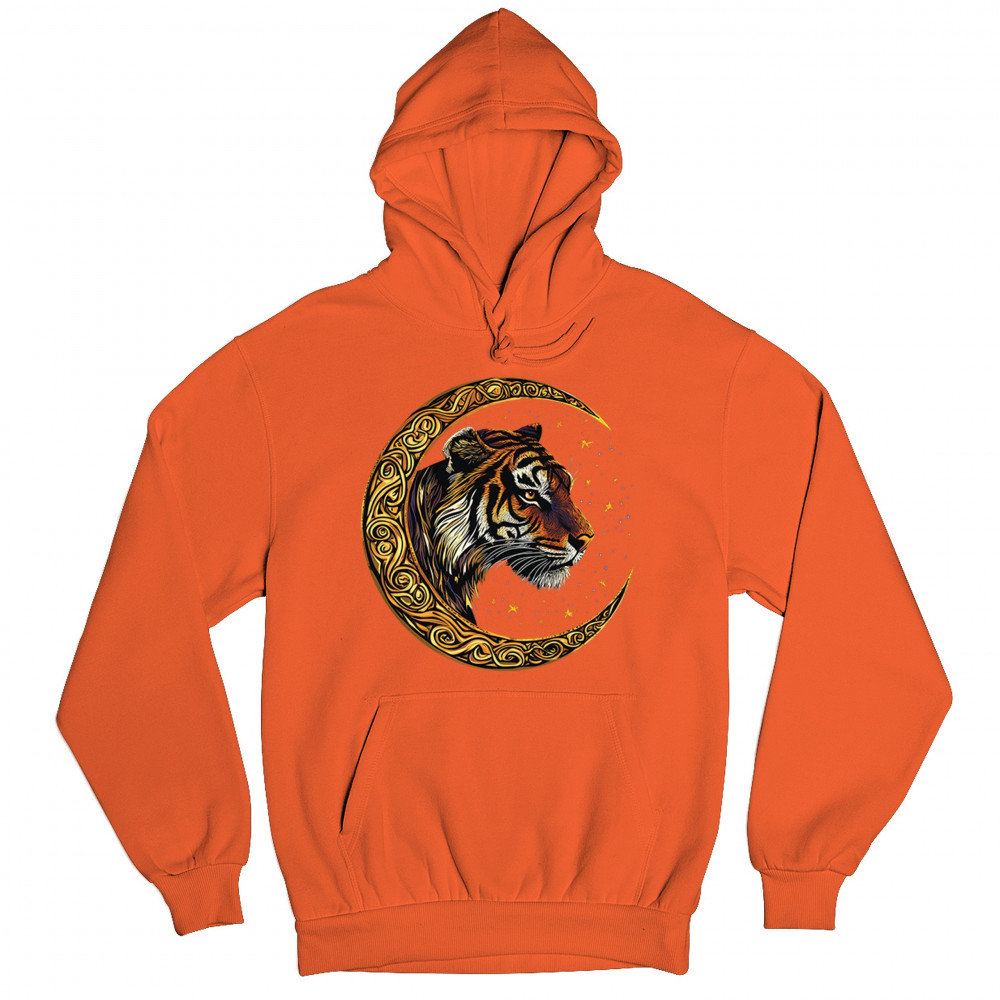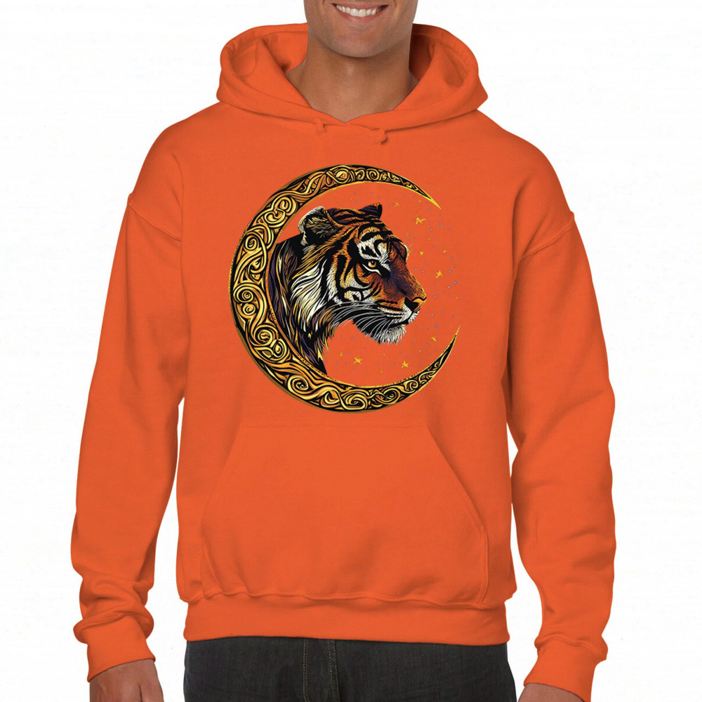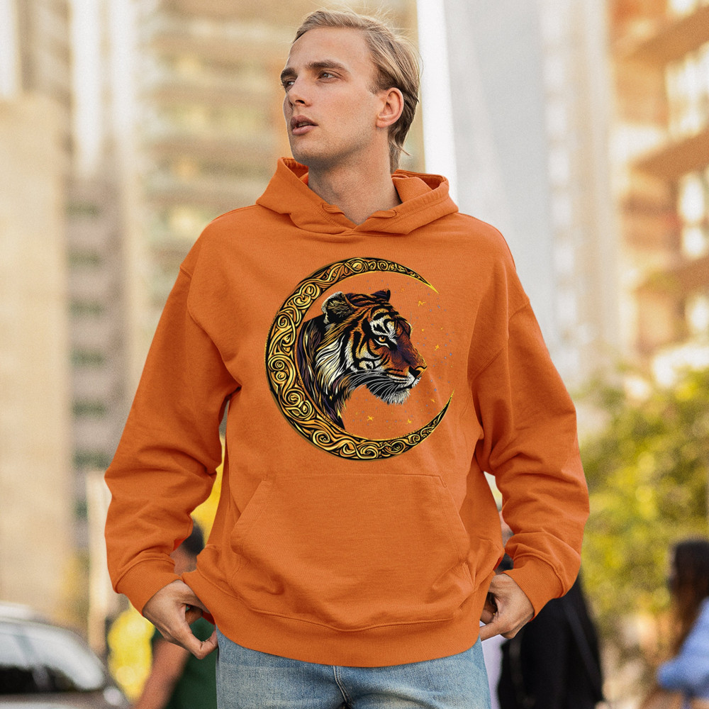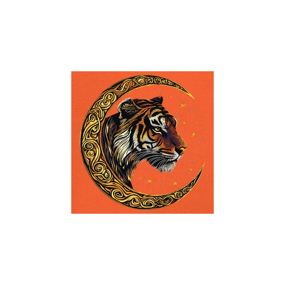 Bold tiger design in Celtic moon with cosmic sky. Symbol of strength, instinct, and jungle mysticism. Great for animal lovers and fantasy fans.