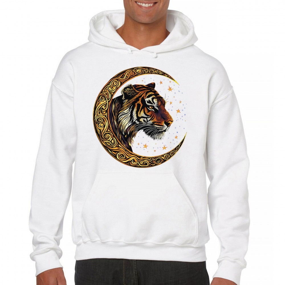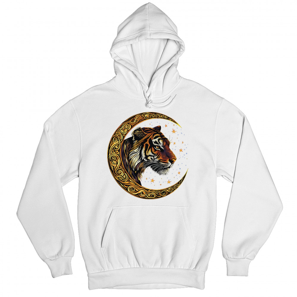 CELTIC MOON TIGER sweatshirt vivid mystical jungle beast spiritual cat hoodie white