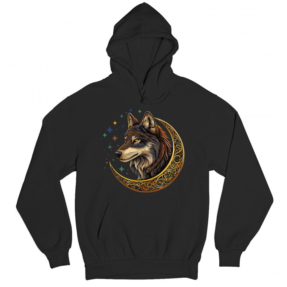 CELTIC MOON WOLF sweatshirt mystical forest guardian spiritual nature hoodie black