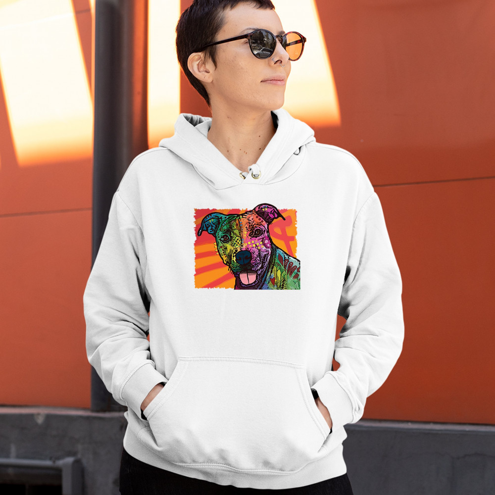 COLORFUL PITBULL sweatshirt andy maxx dog lover pet owner adopt hoodie white