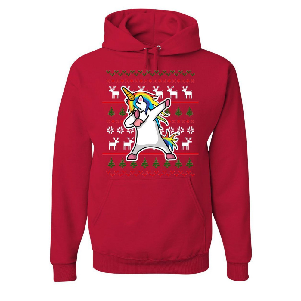 DABBING UNICORN ugly sweater hoodie christmas xmas dab rudolph sweatshirt red