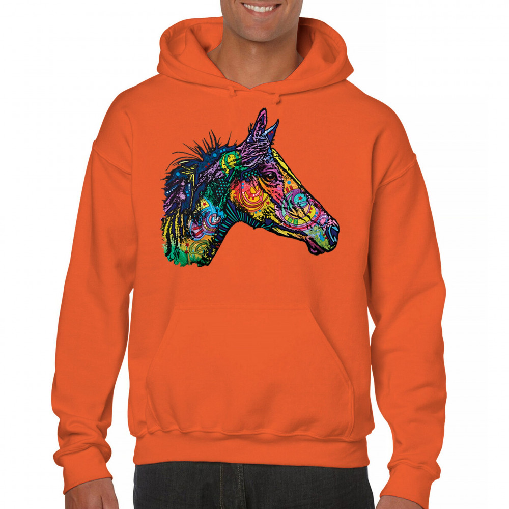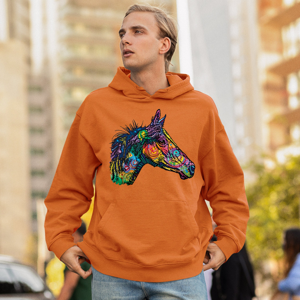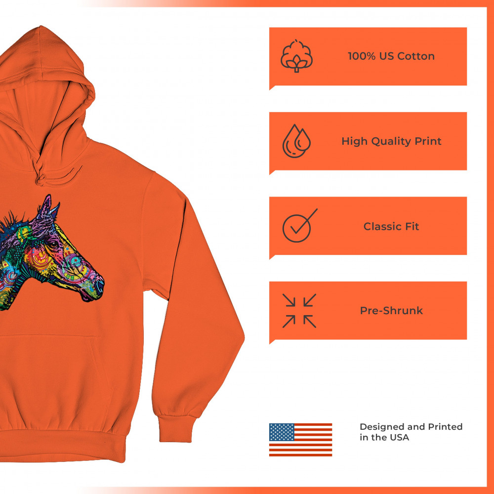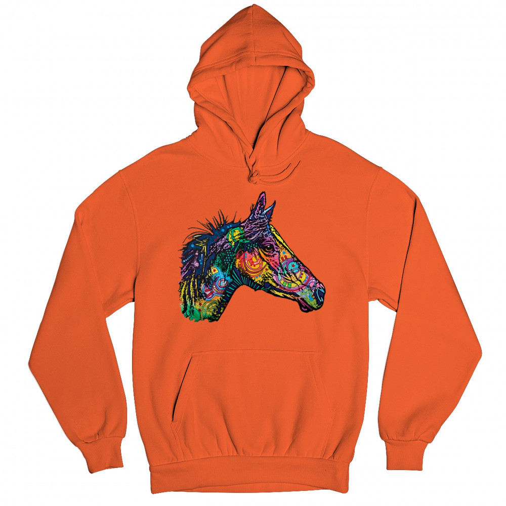 DEAN RUSSO COLORFUL HORSE sweatshirt neon mosaic wild mustang animal hoodie orange