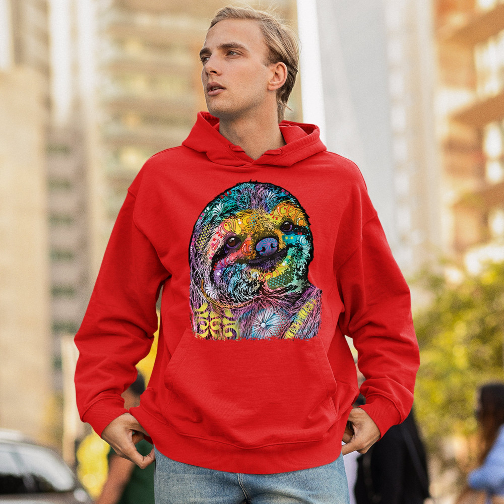 DEAN RUSSO CUTE LAZY SLOTH sweatshirt funny wild life colorful hoodie red