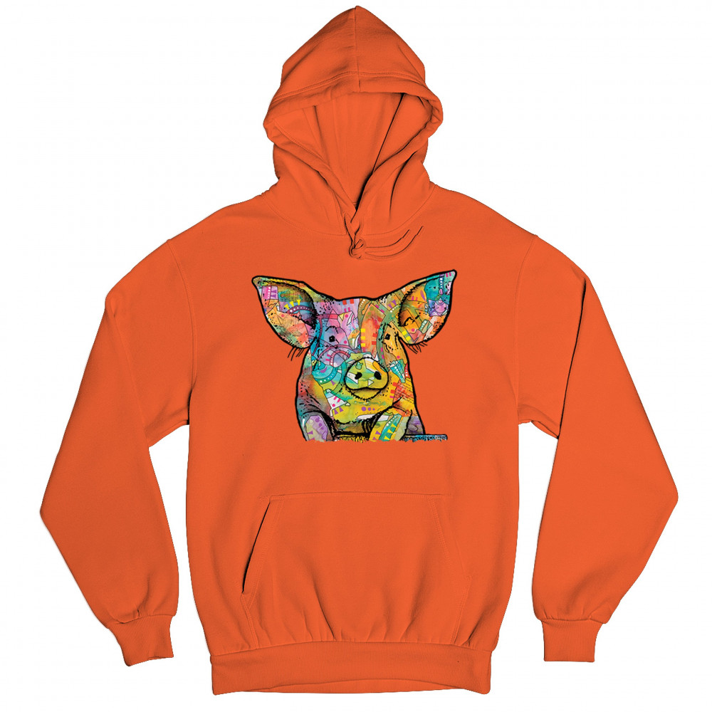 DEAN RUSSO FUNNY CUTE PIG sweatshirt farm piglet lover barn hoodie orange
