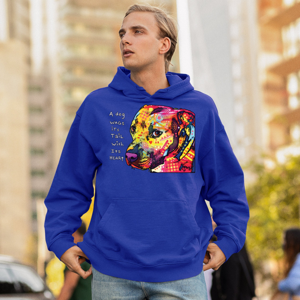 DEAN RUSSO PIT BULL sweatshirt dog wags its tail with its heart hoodie royal blue