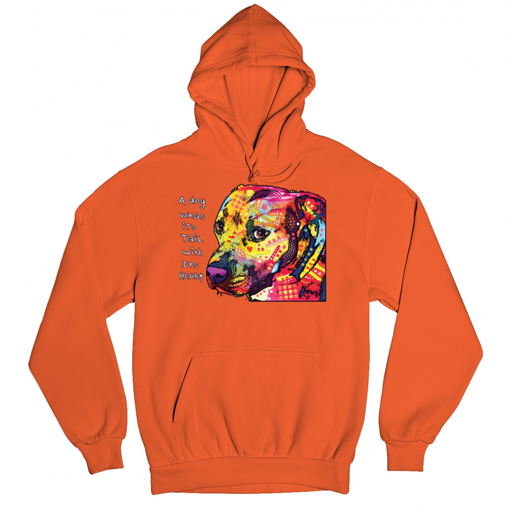 DEAN RUSSO PIT BULL sweatshirt dog wags its tail with its heart hoodie orange