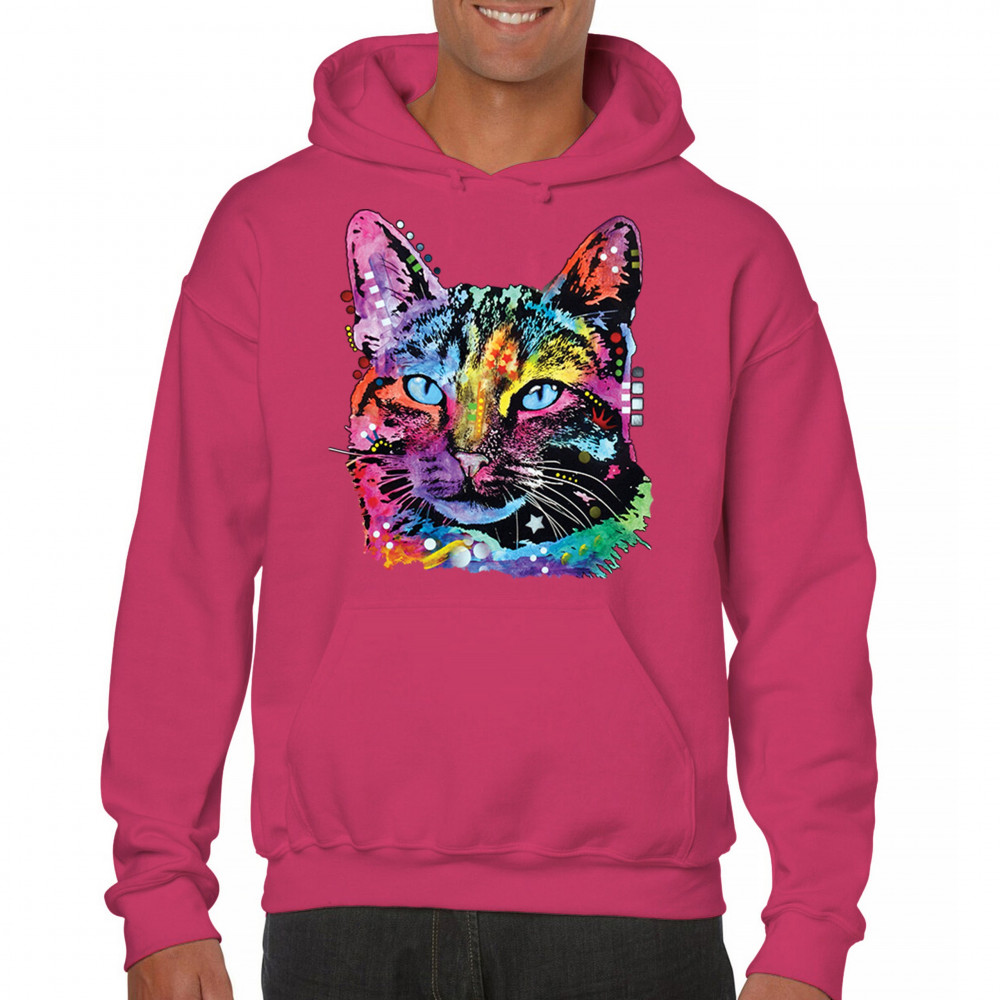 DEAN RUSSO THOUGHTFUL CAT sweatshirt colorful pet kitten eyes hoodie pink