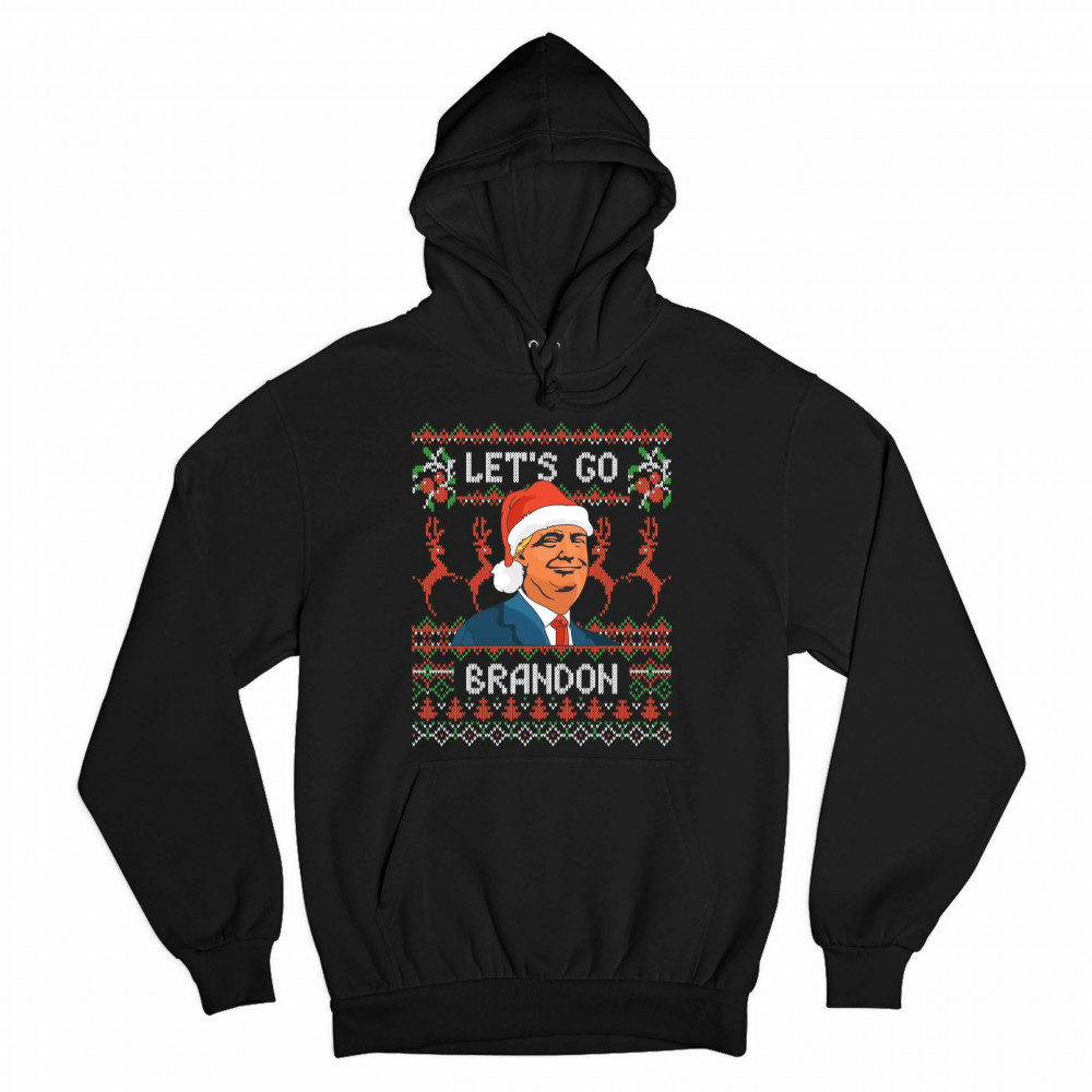 DONALD TRUMP LET'S GO BRANDON sweatshirt christmas xmas ugly sweater hoodie black