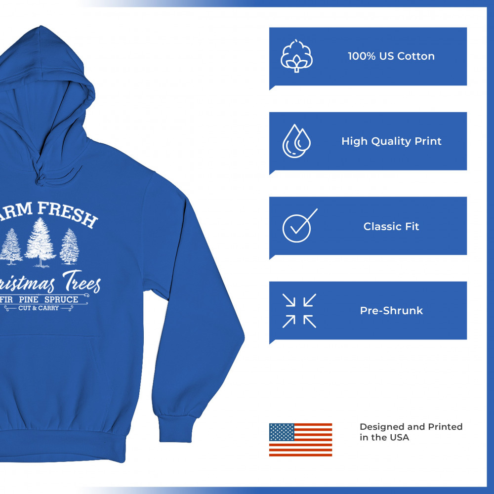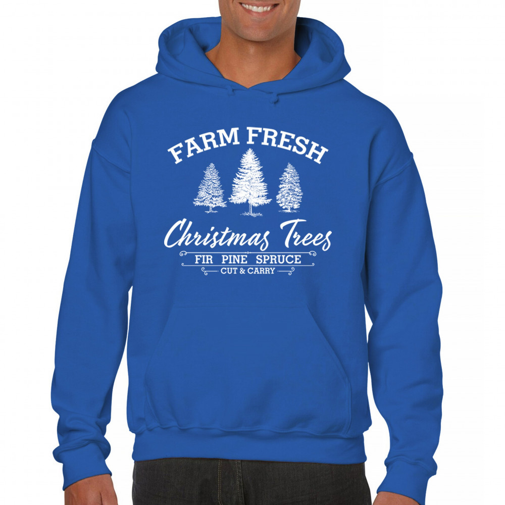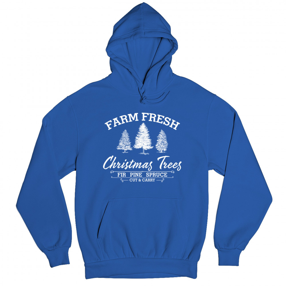 FARM FRESH CHRISTMAS TREES sweatshirt xmas holiday spirit festive hoodie royal blue