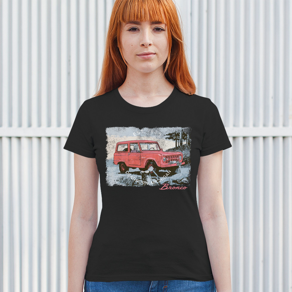 FORD BRONCO DEARBORN MICHIGAN EST 1966 t-shirt vintage truck 4x4 women's tee black