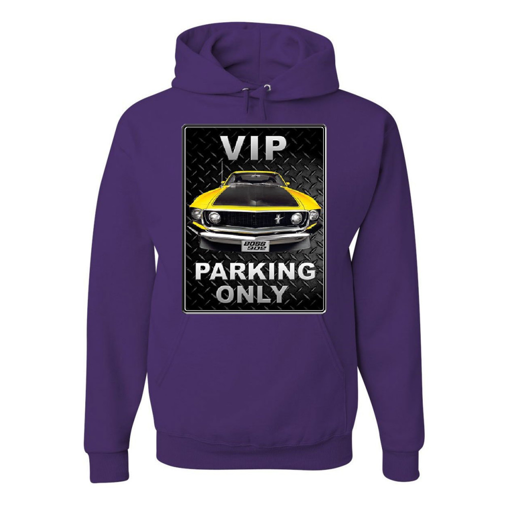 VIP PARKING ONLY ford mustang hoodie yellow boss 302 muscle car sweatshirt purple