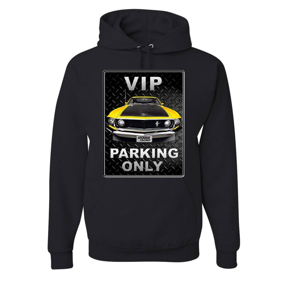 VIP PARKING ONLY ford mustang hoodie yellow boss 302 muscle car sweatshirt black