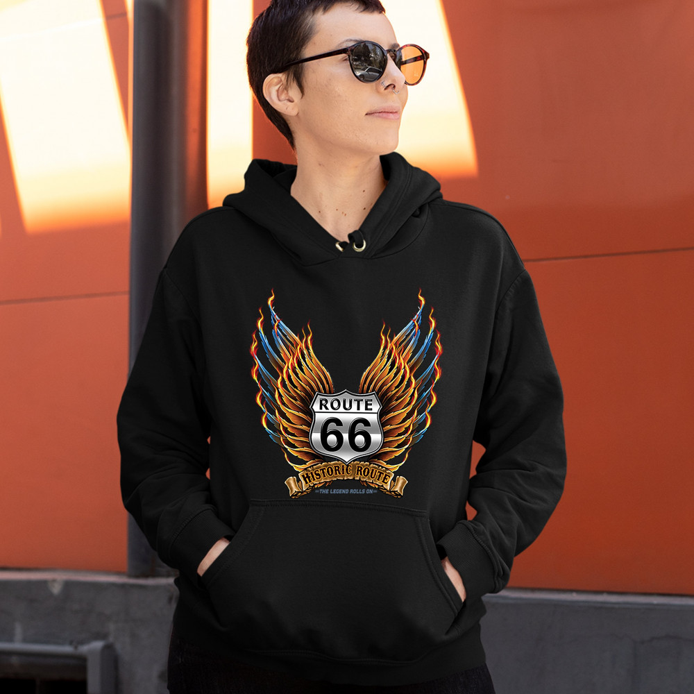 HISTORIC ROUTE 66 sweatshirt the legend rolls on the mother road hoodie black