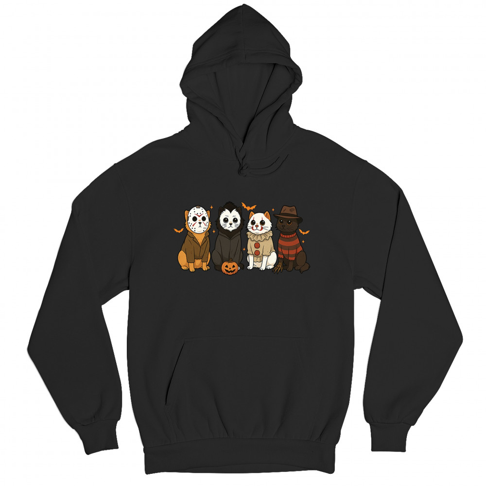 HORROR CATS unisex hoodie trick or treat halloween spooky pumpkin head black