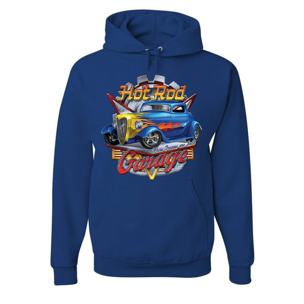 HOT ROD GARAGE hoodie where dreams are built us classic rebuild sweatshirt royal blue