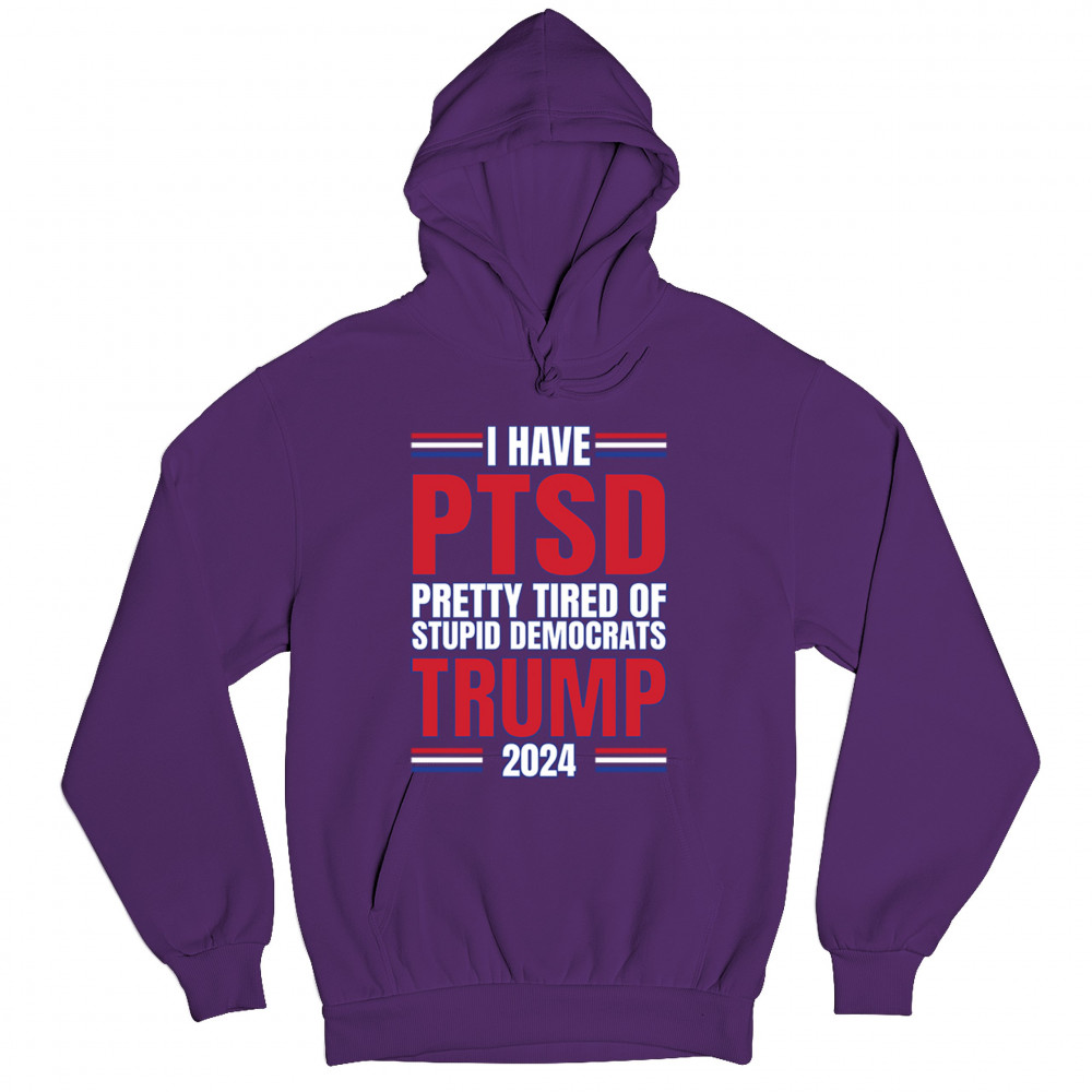 Stand up against the political chaos with "I have PTSD Pretty Tired of Democrats, Trump 2024" tee. As a dedicated supporter of conservative values, join the Trump Train to victory. Trust in God, not government, and reject the traitors to our nation. Let the American flag symbolize our resilience as we fight for President Trump and the future of America.
