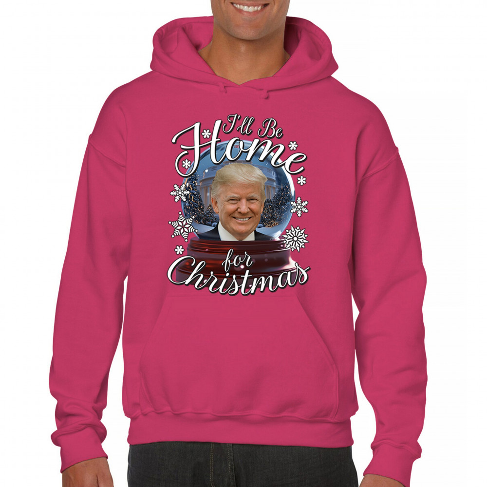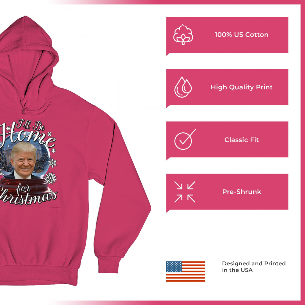 Get ready for the ultimate blend of holiday cheer and American pride with this "I'll Be Home for Christmas" design featuring Donald J. Trump in a festive snow globe. Perfect for gifts, holiday parties, or cozy mornings, this standout piece celebrates the season with style. Whether paired with matching pajamas or a cozy sweatshirt, it's a perfect way to add patriotic charm to your Feliz Navidad celebrations or office gatherings.